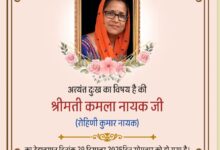 मां आदिशक्ति की उपासक,स्नेह और संस्कार की प्रतीक: श्रीमती कमला (नीलम) नायक का जीवन-विराम…