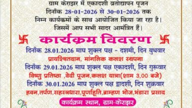 जुनवानी। ग्राम जुनवानी में आयोजित एकादशी व्रतोद्यापन यज्ञ के भव्य व दिव्य कलश यात्रा निकाली जाएगी। धार्मिक परंपराओं के अनुसार…