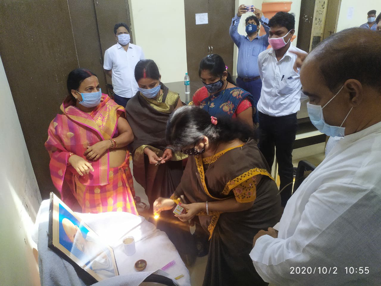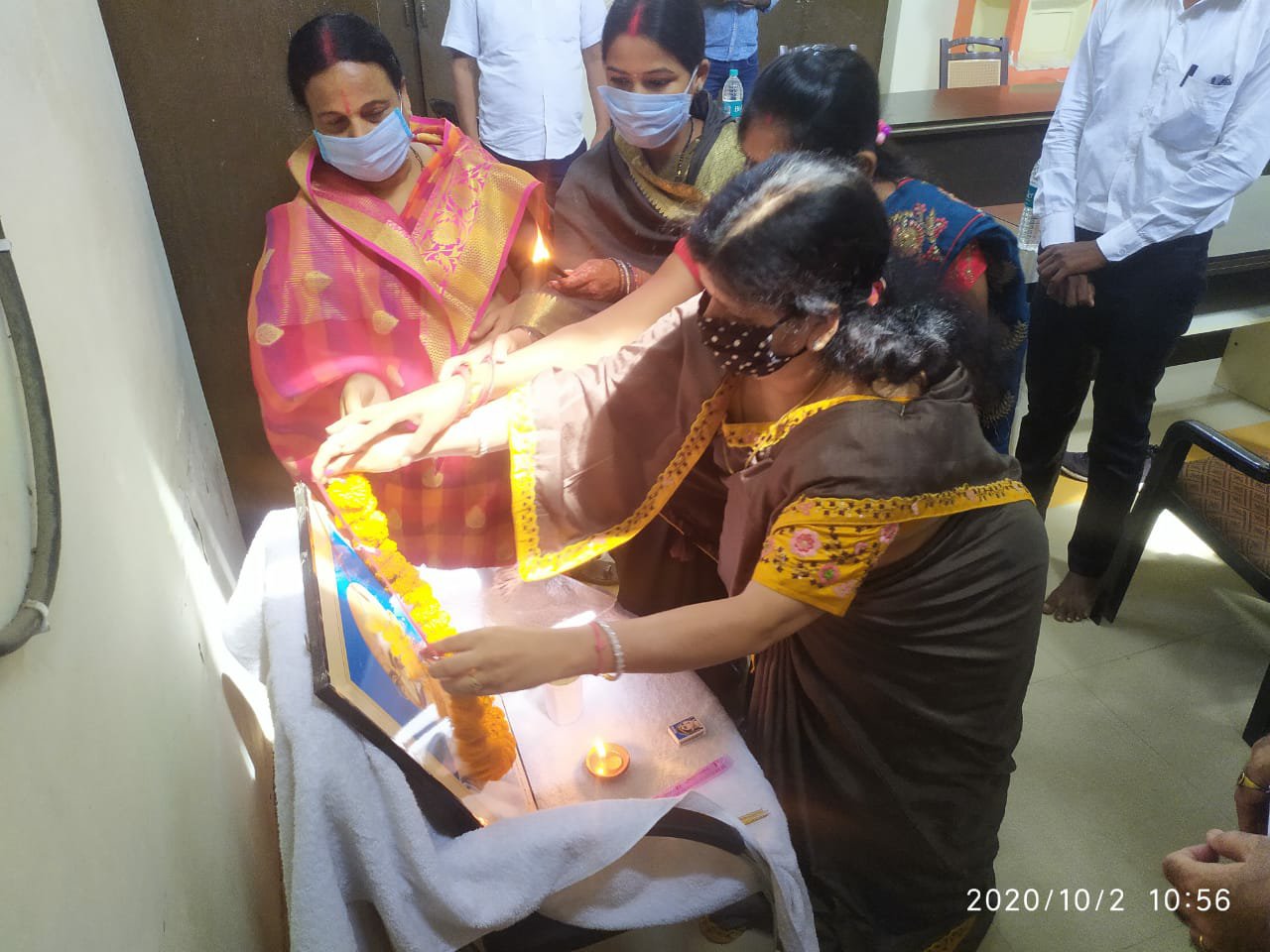 खरसिया। आज 2 अक्टूबर को नगर पालिका परिषद खरसिया में सोसल डिस्टेंस तथा शासन के नियमों का पालन करते हुए, राष्ट्रपिता महात्मा गांधी एवं लाल बहादुर शास्त्री जी का जयंती, उनके चित्र पर माल्यार्पण दीप प्रज्वलित कर किया गया।