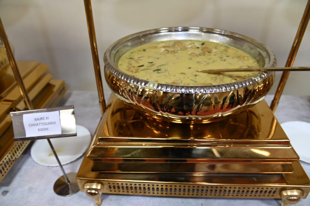 बाजरे की कढ़ी, ज्वार की रोटी और कोदो की ड्राईफ्रूट खीर से सजी थाली