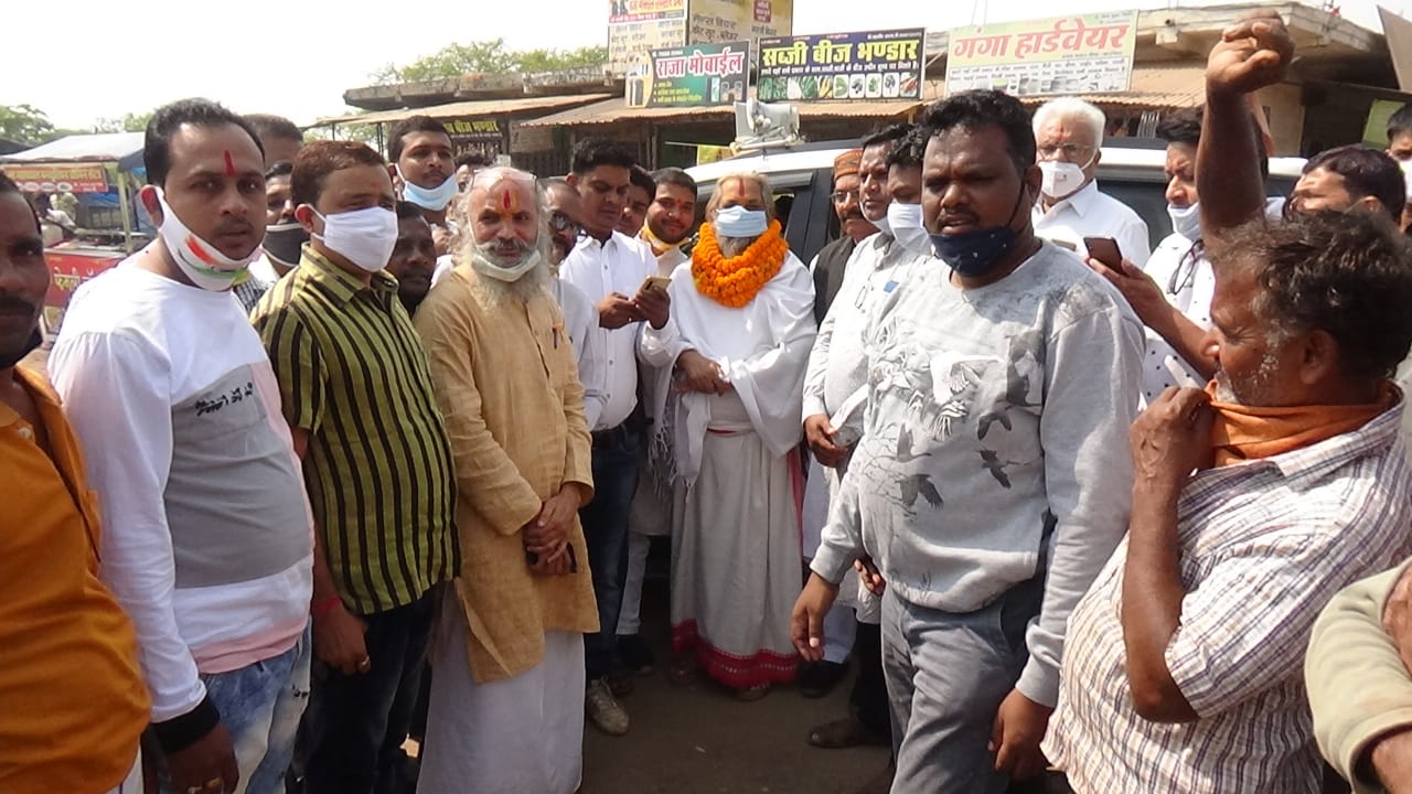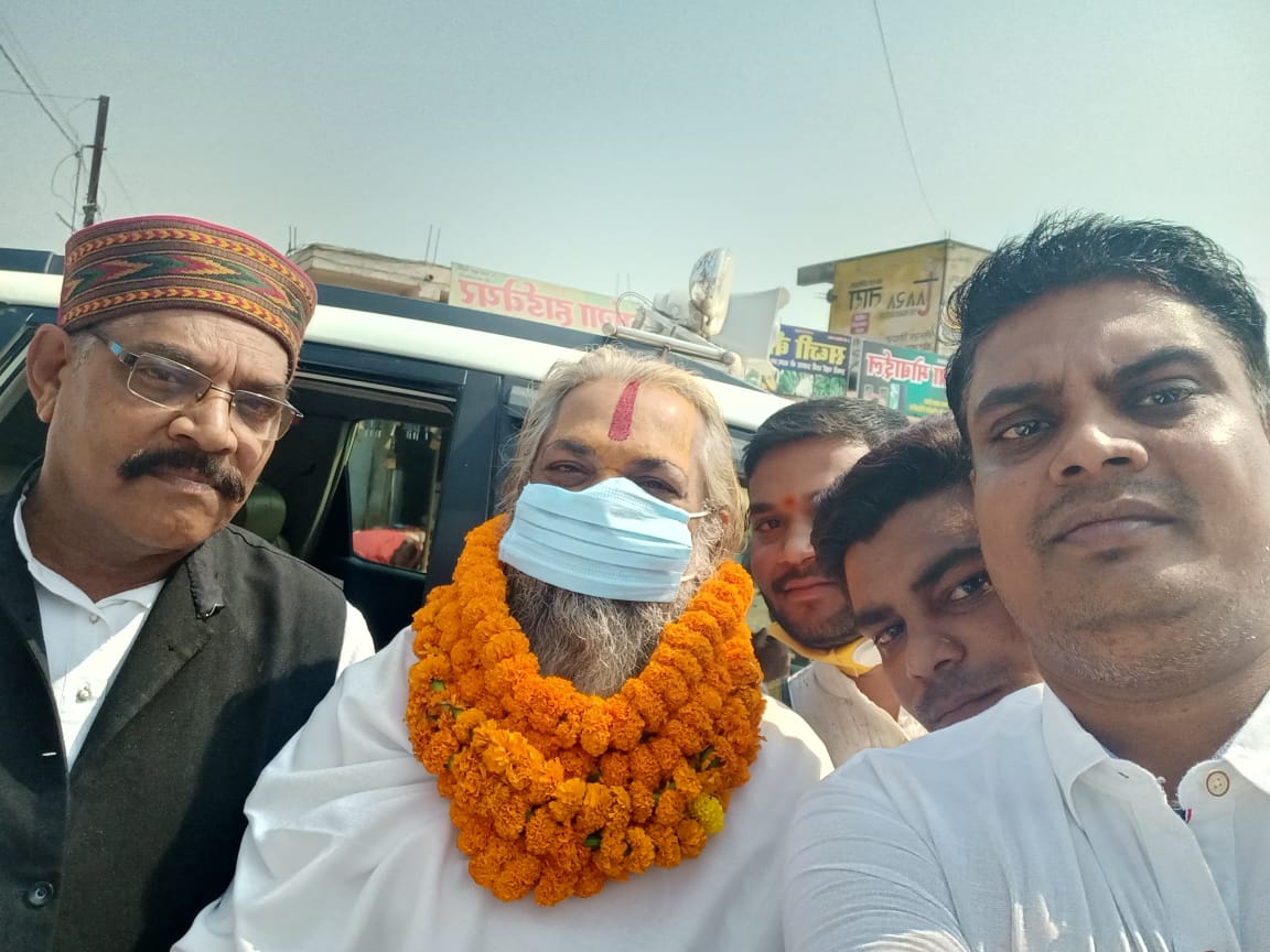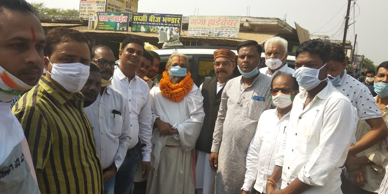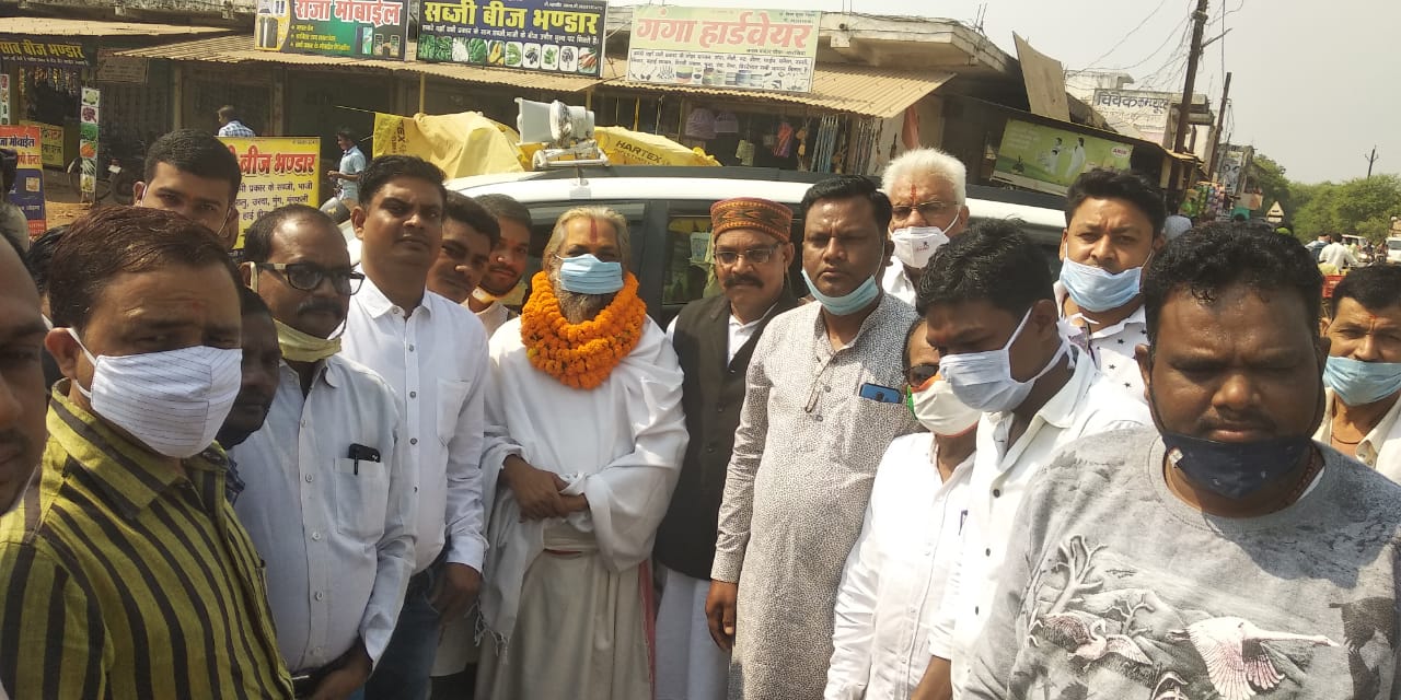 खरसिया। छत्तीसगढ़ राज्य गौ सेवा आयोग के अध्यक्ष राजेश्री डॉक्टर महन्त रामसुन्दर दास जी महाराज पीठाधीश्वर श्री शिवरीनारायण मठ का आज एक दिवसीय रायगढ़ जिले का प्रवास के दौरान, खरसिया में कांग्रेसियों ने कोविड नियमों का पालन करते हुए, राजेश्री डॉक्टर महन्त रामसुन्दर दास जी महाराज का फूल मालाओं व आतिशबाजी से भव्य स्वागत किया गया।