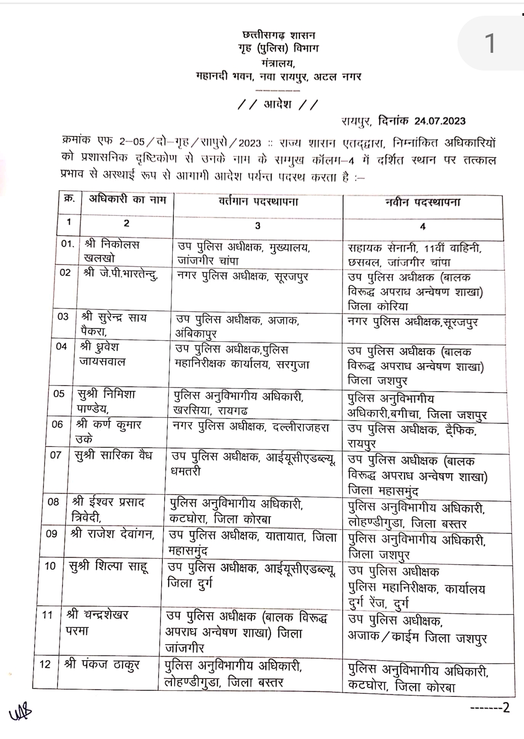 राज्य पुलिस सेवा के अधिकारियों का बड़े पैमाने पर तबादला, जानिए किसे मिली कहां की जिम्मेदारी…