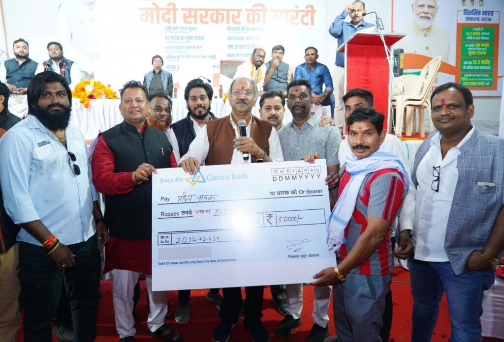 शिक्षा एवं संस्कृति मंत्री श्री बृजमोहन अग्रवाल शामिल हुए विकसित भारत संकल्प यात्रा शिविर में