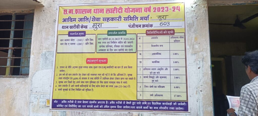 बसनाझर के किसानों ने गारंटी में धान खरीदी किए जाने वाले पोस्ट के संबंध में चर्चा करते हुए बताए कि धान का 2183और2203 में ही भुगतान किया जा रहा तो खरीदी केन्द्रों के दिवाल पर टंगे पोस्टर को दिखाते हुए 3100रूपए के का बैनर क्यों?