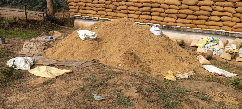 खरसिया। खरसिया क्षेत्र के अंतर्गत किसानों की उपज खरीदने के लिए विभिन्न विकास खंडों में केन्द्र बनाए गए हैं। खरसिया के अधिकांश धान केंद्रों में शासन के निर्देशों का खुला उल्लंघन खरीदी केंद्र के प्रभारी और उनके प्रतिनिधियों के द्वारा किया जा रहा है। धान खरीदी केंद्रों में बग़ैर लिपाई पुताई किए फड़ पर धान को बिना सुरक्षा के खुली जमीन पर बोरों में भरकर रखा जा रहा है भराई के दौरान जमीन पर गिरे धूल मिट्टी में सने हुए धान को इकट्ठा कर रख लिया जा रहा है जिससे हर किसने को 10 से 20 किलो का नुकसान होते चला जा रहा है।