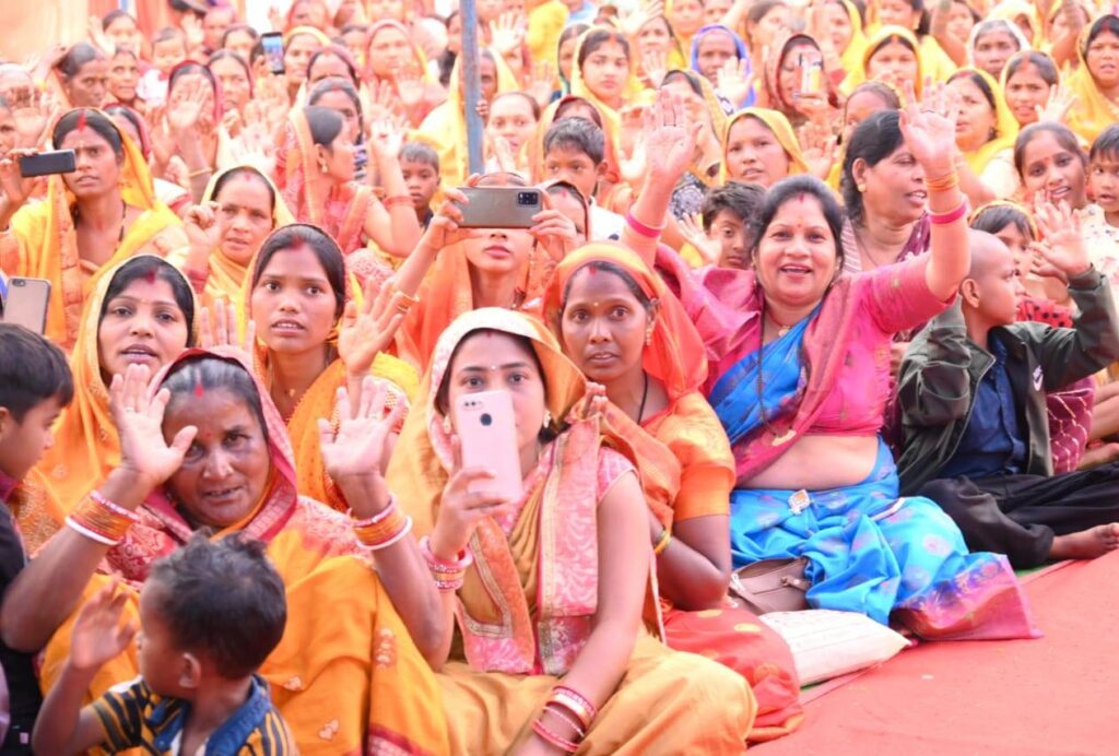 मुख्यमंत्री विष्णुदेव साय ग्राम लोधमा में आयोजित श्रीमद भागवत ज्ञान यज्ञ सप्ताह में शामिल हुए