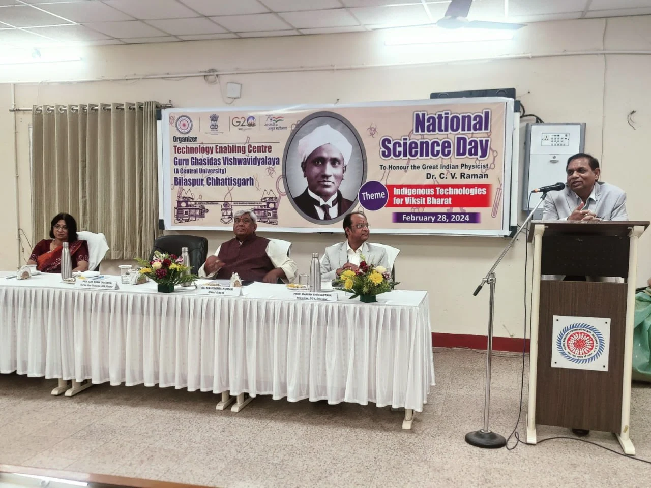 गुरु घासीदास विश्वविद्यालय (केन्द्रीय विश्वविद्यालय) में दिनांक 28 फरवरी 2024 को सुबह 11 बजे रजत जयंती सभागार में राष्ट्रीय विज्ञान दिवस कार्यक्रम का आयोजन किया गया इस वर्ष की थीम ‘विकसित भारत के लिए स्वदेशी प्रौद्योगिकियां’ है।
