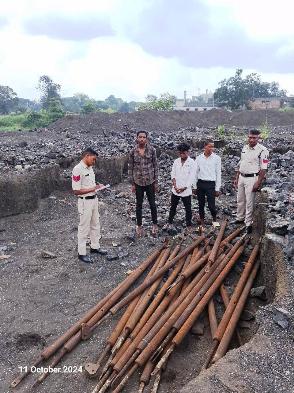 थाना पूंजीपथरा क्षेत्र के अंतर्गत ओपी जिंदल सामुदायिक महाविद्यालय परिसर में हुई लोहे के मचान पाइप चोरी की घटना को पुलिस ने त्वरित कार्रवाई करते हुए 24 घंटे के भी चोरी को सुलझा लिया है। टीआई राकेश मिश्रा के नेतृत्व में पुलिस टीम ने मामले में शामिल तीन आरोपियों को गिरफ्तार कर चोरी किए गए 20 नग लोहे के मचान पाइप, कुल वजन लगभग 700 किलोग्राम (कीमत ₹24,000) को बरामद किया और आरोपियों को रिमांड पर भेजा गया है ।