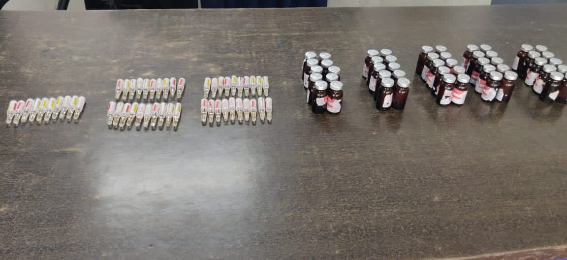 जिनके पास से एक लाल रंग थैला मिला, थैले के अंदर एक सफेद रंग की पॉलिथीन के अंदर नशीला इंजेक्शन रखा मिला जिसे विधिवत बरामदगी कर गिनती करने पर 50 नग एविल इंजेक्शन प्रत्येक में 10ml