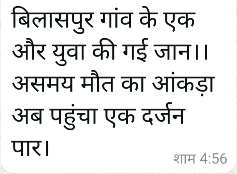 ग्राम पंचायत बिलासपुर में असमय मौतों का सिलसिला जारी,आंकड़ा दर्ज से पार…