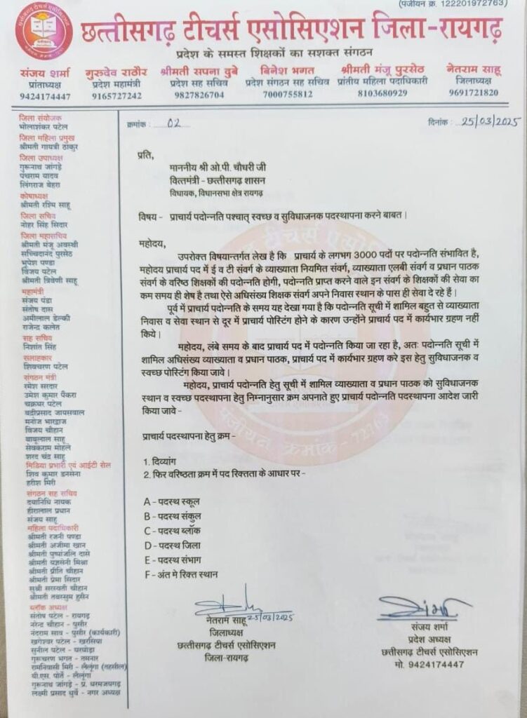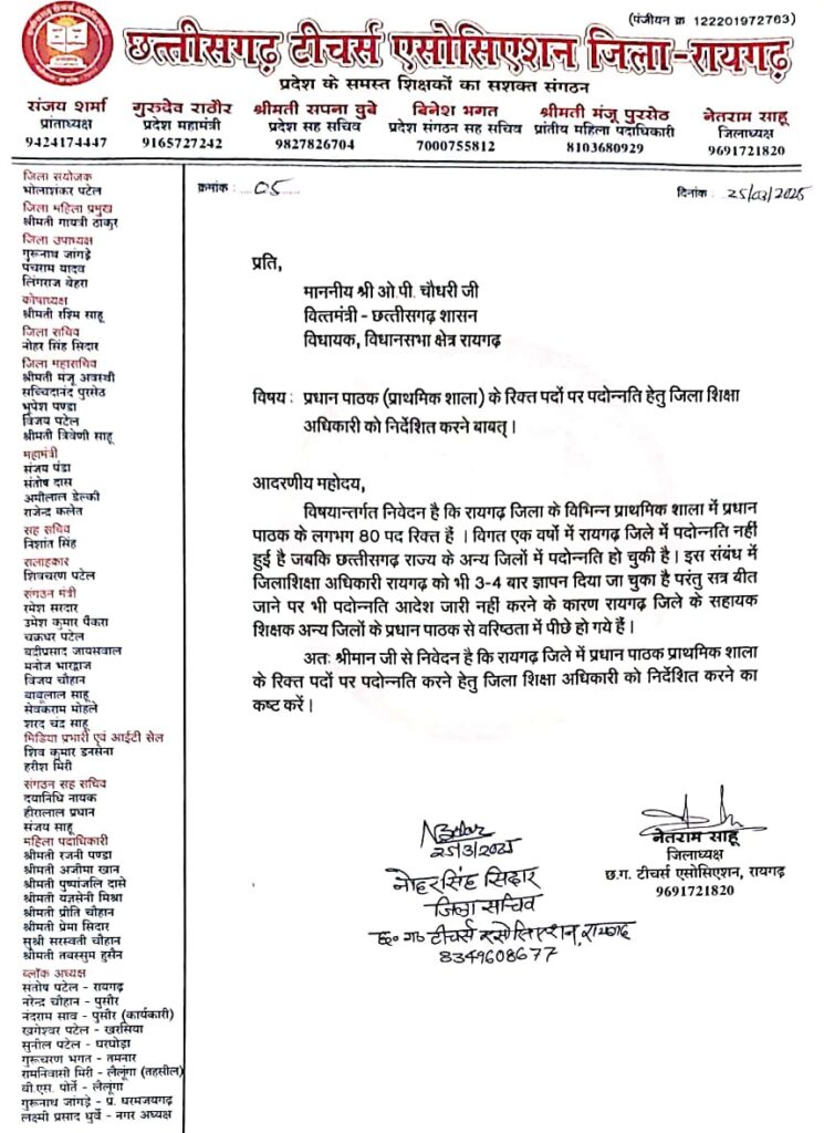 टीचर्स एसोसिएशन की मांग,कामदेव टेकाम व सोना साहू के क्रमोन्नति मामले पर जनरल आर्डर जारी करे शासन