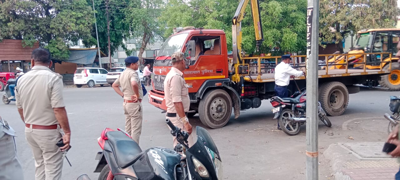यातायात विभाग के अधिकारियों एवं कर्मचारियों द्वारा तीन क्रेन के साथ पूरी अमला सहित नेहरू चौक से कार्यवाही प्रारंभ करते हुए मुंगेली नाका चौक, मंगला चौक, अमेंरी चौक, महाराणा प्रताप चौक, राजीव गांधी चौक, मंदिर चौक, बेयर हाउस चौक, राजेन्द्र नगर चौक, बृहस्पति बाजार चौक, फूल चौक, ईदगाह चौक सहित कई अन्य जगह पर चालानी कार्यवाही की गई।