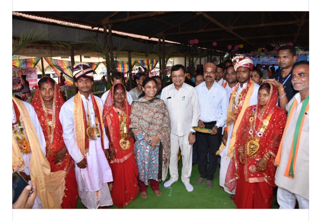 प्रभारी मंत्री देवांगन सहित जनप्रतिनिधियों ने नवदंपतियों को दिया आशीर्वाद