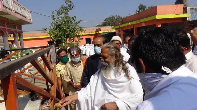 खरसिया : छत्तीसगढ़ राज्य गौ सेवा आयोग के अध्यक्ष राजेश्री महन्त रामसुन्दर दास महाराज पीठाधीश्वर शिवरीनारायण मठ आज रायगढ़ जिले के दो दिवसीय प्रवास पर रहे। इस दौरान वे खरसिया पहुंच, मदन मोहन गौशाला का निरीक्षण किए। वही गौशाला स्थित गायों के कमरे, खाने पीने की व्यवस्था, साफ सफाई आदि की बारीकी से निरिक्षण किया गया। निरीक्षण दौरान मदन मोहन गौशाला की अच्छी व्यवस्था देख, सराहना किये। साथ ही उपस्थित मदन मोहन गौशाला समितियों के सदस्यों से गौ सेवा के महत्व पर विस्तार पूर्वक चर्चा की गई।