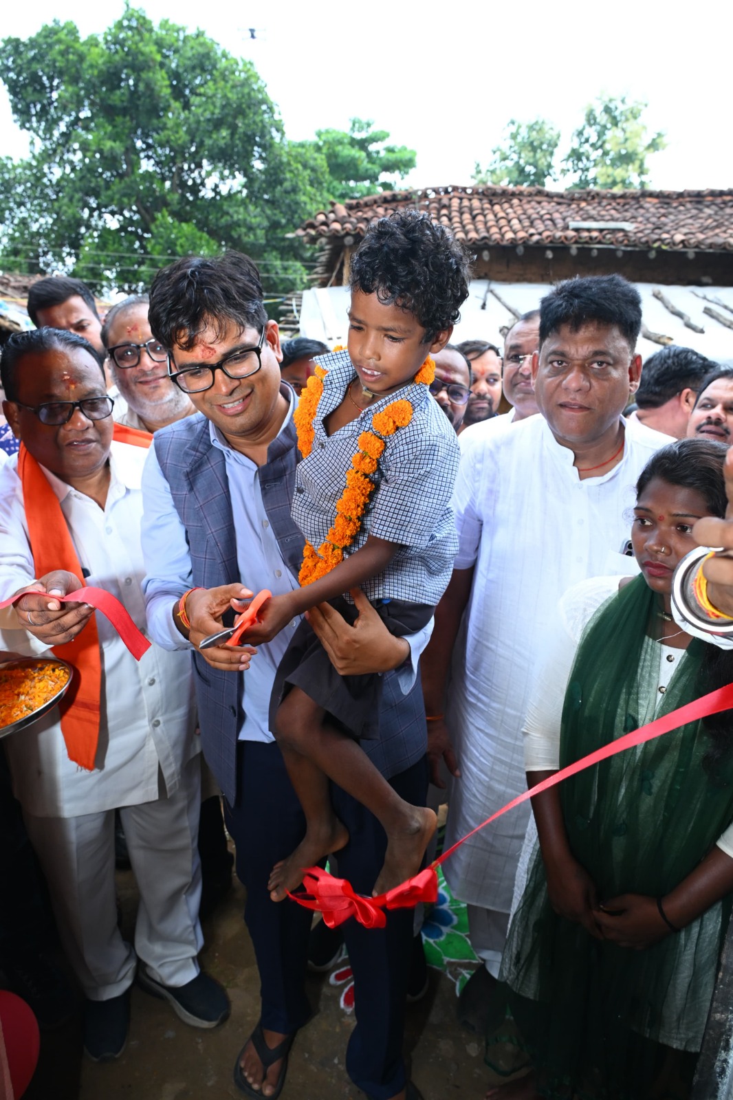 रायगढ़।वित्त मंत्री ओ.पी.चौधरी लैलूंगा प्रवास के दौरान कुर्रा गांव में निवासरत विशेष पिछड़ी जनजाति के बिरहोर परिवारों के बीच पहुंचे। यहां उन्होंने सुकनी बिरहोर के पीएम आवास का गृह प्रवेश कराया और नए मकान की पूरे परिवार को बहुत बधाई और शुभकामनाएं दीं। उन्होंने परिवार के नन्हें बच्चे दिलीप बिरहोर से ही गृह प्रवेश का फीता कटवाया।