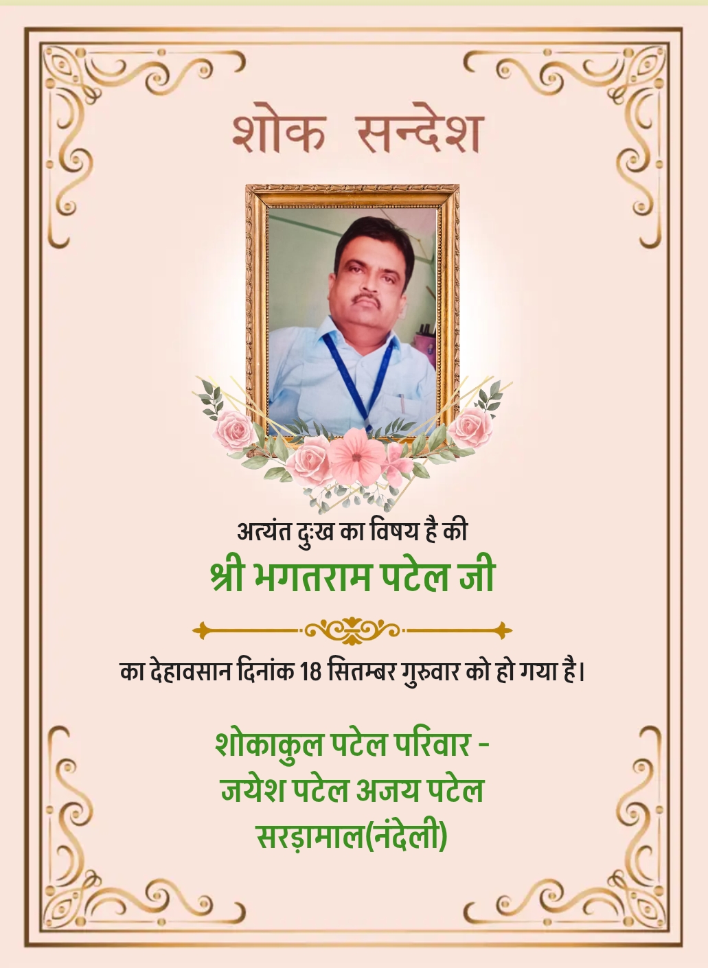 рдЧрд╣рд░реЗ рджреБрдГрдЦ рдХреЗ рд╕рд╛рде рд╕реВрдЪрд┐рдд рдХрд┐рдпрд╛ рдЬрд╛рддрд╛ рд╣реИ рдХрд┐ рдЬрдпреЗрд╢ рдкрдЯреЗрд▓,рдЕрдЬрдп рдкрдЯреЗрд▓