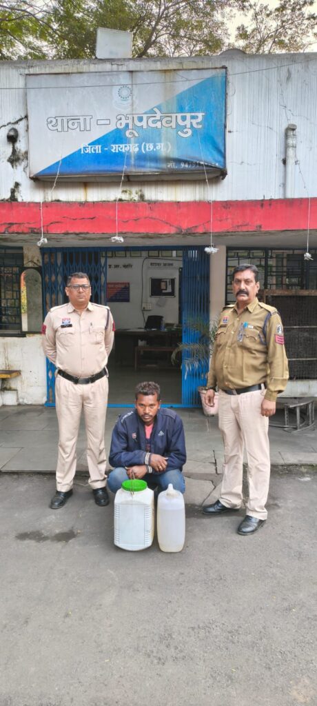 रायगढ़।थाना प्रभारी भूपदेवपुर उप निरीक्षक संजय कुमार नाग के नेतृत्व भूपदेवपुर पुलिस द्वारा अवैध शराब पर लगातार कार्यवाही की जा रही है। इसी क्रम में आज 16 नवंबर को थाना प्रभारी भूपदेवपुर के नेतृत्व में ग्राम कछार में बड़ी कार्यवाही की गई।