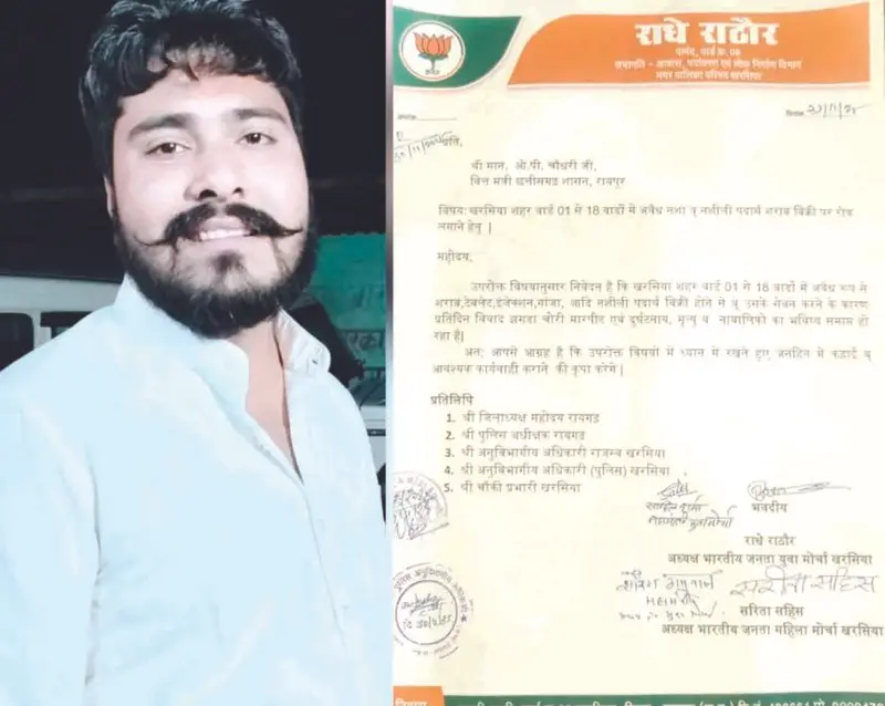 खरसिया। शहर के 1 से 18 वार्डों में अवैध शराब, नशीली गोलियों, इंजेक्शन और गांजे की खुली बिक्री को लेकर भारतीय जनता युवा मोर्चा ने मंगलवार को वित्त मंत्री ओपी चौधरी के नाम अनुविभागीय अधिकारी पुलिस प्रभात पटेल को ज्ञापन सौंपा। नेतृत्व कर रहे भाजयुमो खरसिया अध्यक्ष व वार्ड 6 के पार्षद राधे राठौर ने बताया कि नशे का जाल इस कदर फैल चुका है कि वार्डों में सुबह से रात और रात से फिर सुबह—कहीं न कहीं झगड़ा, चोरी, मार-पीट या दुर्घटना की खबर मिल ही जाती है।