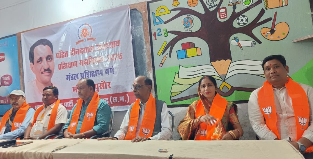 ✍️सुरेश पटेल @रायगढ़।पंडित दीनदयाल उपाध्याय प्रशिक्षण महाअभियान 2026 के अंतर्गत रायगढ़ विधानसभा क्षेत्र के पुसौर भाजपा मण्डल का अभिनव स्कूल पुसौर में आयोजित प्रशिक्षण वर्ग शिविर के प्रथम दिवस उद्घाटन सत्र में मुख्य अतिथि पूर्व विधायक विजय अग्रवाल एवं अतिथि रायगढ़ जिला भाजपा प्रभारी प्रशांत सिंह ठाकुर ने प्रशिक्षण में शामिल कार्यकर्ताओं एवं वक्ताओं के साथ मिलकर ध्वजारोहण किया। तत्पश्चात भारत माता ,पंडित दीनदयाल उपाध्याय, पंडित श्यामा प्रसाद मुखर्जी की छायाचित्र के समक्ष दीप प्रज्जवलन कर शुभारंभ किया गया। प्रशिक्षण शिविर वर्ग में उपस्थित अतिथियों, वक्ताओं एवं कार्यकर्ताओं के द्वारा वंदे मातरम एवं राजगीत का सामूहिक गान किया गया। कार्यकर्ताओं के द्वारा मुख्य अतिथि एवं वक्ता पूर्व विधायक विजय अग्रवाल, अतिथि रायगढ़ जिला भाजपा प्रभारी प्रशांत सिंह ठाकुर, जिला महामंत्री विकास केडिया, नगर निगम रायगढ़ के पूर्व पार्षद एवं विधि प्रकोष्ठ के पूर्व जिला संयोजक सुनील थवाईत , द्वितीय दिवस में भाजपा जिला अध्यक्ष अरुणधर दीवान, डूलामणि यादव, जिला महामंत्री जतिन साव, टीकाराम पटेल, रायगढ़ नगर निगम पार्षद आशीष ताम्रकार वक्ताओं को पंडित दीनदयाल उपाध्याय जी के जीवन पर आधारित साहित्य भेंट कर अभिनंदन किया गया एवं सत्र समाप्ति के पश्चात स्मृति चिन्ह के रूप में पंडित दीनदयाल उपाध्याय का छाया चित्र भेंट किया गया। पुसौर भाजपा मंडल प्रशिक्षण वर्ग शिविर के मुख्य अतिथि एवं प्रथम सत्र के मुख्य वक्ता पूर्व विधायक विजय अग्रवाल के साथ अध्यक्षता प्रदेश किसान मोर्चा के प्रदेश कार्यसमिति सदस्य घनश्याम पटेल ने किया एवं द्वितीय सत्र के वक्ता के जिला महामंत्री विकास केडिया ने कार्यविस्तार की हमारी दृष्टि विषय पर कार्यकर्ताओं को संवाद करके चर्चा किया । एवं तृतीय सत्र के वक्ता सुनील थवाईत ने छत्तीसगढ़ की सांस्कृतिक विरासत एवं धरोहर पर कार्यकर्ताओं को संबोधित किया।प्रथम सत्र के मुख्य वक्ता के रूप में रायगढ़ के पूर्व विधायक विजय अग्रवाल ने मंडल के समर्पित एवं कर्मठ कार्यकर्ताओं को “भाजपा का इतिहास एवं विकास ” विषय पर संबोधित करते हुए प्रशिक्षण दिए। उन्होंने अपने संबोधन में भारतीय जनता पार्टी के गौरवशाली इतिहास, स्थापना से लेकर आज तक के विकास, संगठन के विस्तार एवं राष्ट्र निर्माण में उसकी महत्वपूर्ण भूमिका पर विस्तार से चर्चा की । उन्होंने बताया की भारतीय जनता पार्टी एक राष्ट्रवादी राजनीतिक दल है जो भारत को एक सुदृढ़, समृद्ध एवं शक्तिशाली राष्ट्र के रूप में विश्व पटल पर स्थापित करने के लिए कृत संकल्प है।