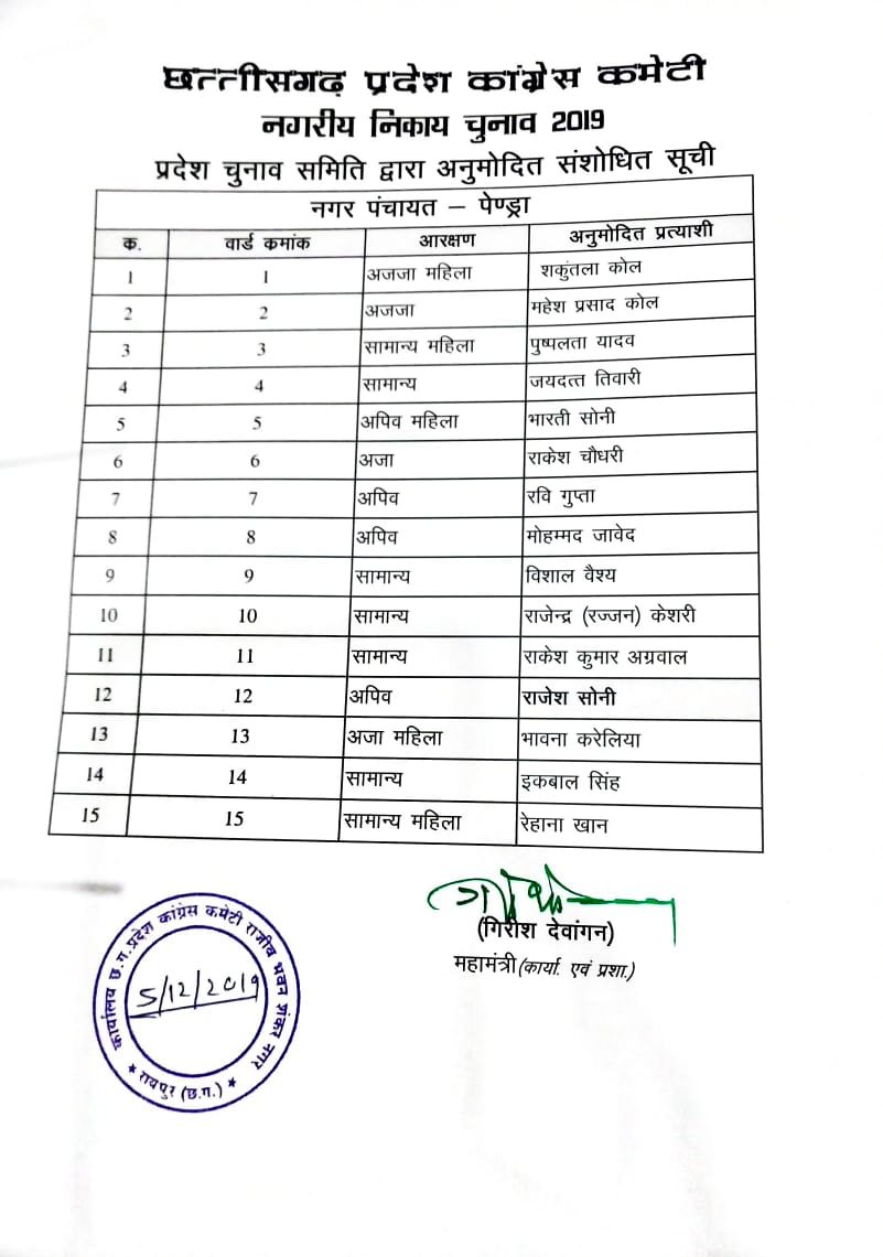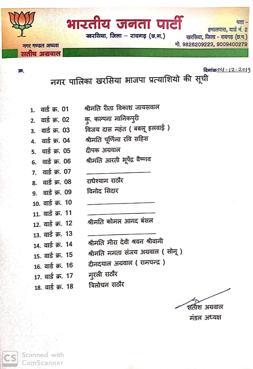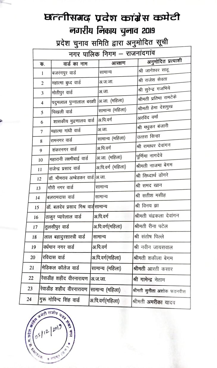देर रात कांग्रेस और भाजपा ने कई प्रत्याशियों की सूची जारी की