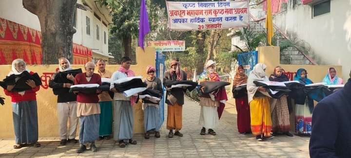 इस अवसर पर प्रातःकालीन सफाई एवं श्रमदान के उपरांत दोपहर 01:00 बजे कुष्ठी बंधुओं में नवीन वस्त्रों का वितरण किया गया।