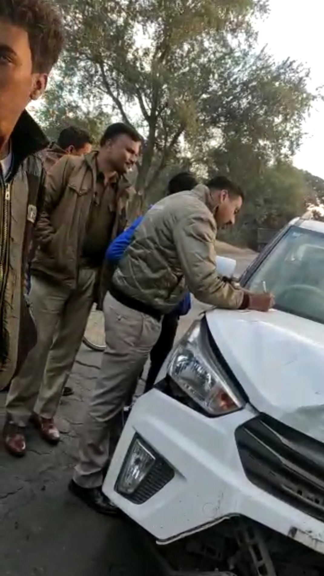 सामने से तेज़ रफ़्तार में आ रही एक क्रेटा कार ने उसकी बाइक में जोरदार टक्कर मार दी। जिससे उसको मामूली चोटें हैं व टक्कर के बाद चालक कार छोड़ मौके से फरार हो गया। जांच अधिकारी उत्तम साहु ने बताया कि हेलमेट पहने होने प्रेम चौहान बाइक चालक जान बच गया । दुर्घटना की सूचना पर उत्तम साहु भुपदेवपुर थाना प्रभारी खरसिया थाना क्षेत्र के ग्राम सेन्द्रीपाली पहुंच घटनाक्रम में घायल प्रेम का प्राथमिक उपचार कराया गया। आगे की कार्रवाई खरसिया थाना प्रभारी द्वारा किया जावेगा ।