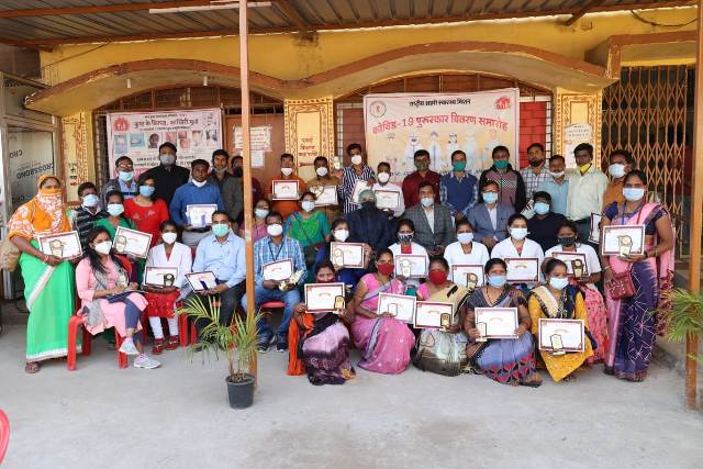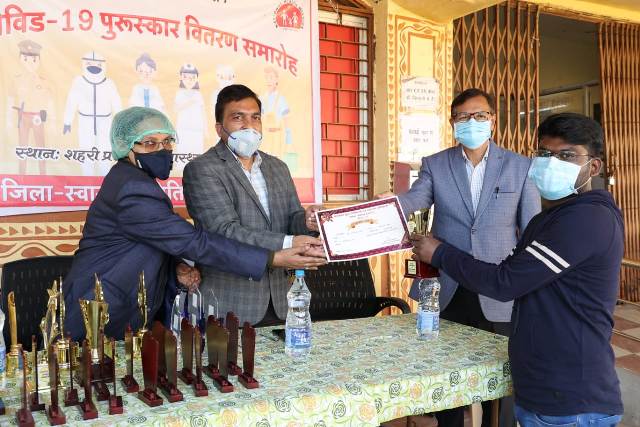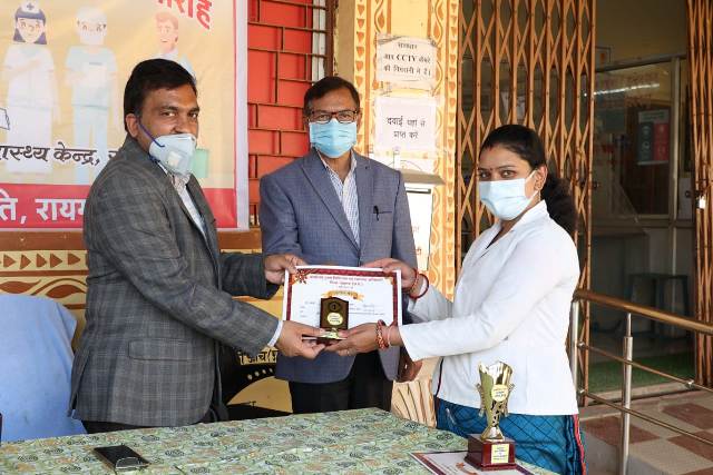 रायगढ़ । मुख्य चिकित्सा एवं स्वास्थ्य अधिकारी डॉ.एस.एन.केशरी ने आज हेल्थ एण्ड वेलनेस सेंटर (शहरी प्राथमिक स्वास्थ्य केन्द्र)रामभांठा, रायगढ़ में शहरी क्षेत्र में कोविड-19 की रोकथाम एवं बचाव हेतु कार्यरत अधिकारी एवं कर्मचारियों को उनके योगदान एवं उत्कृष्ट कार्य के लिये प्रशस्ति पत्र एवं मोमेन्टो प्रदाय किया। इस मौके पर डॉ.एस.टोप्पो एवं शहरी स्वास्थ्य मिशन रायगढ़ के समस्त अधिकारी-कर्मचारी उपस्थित रहे।
