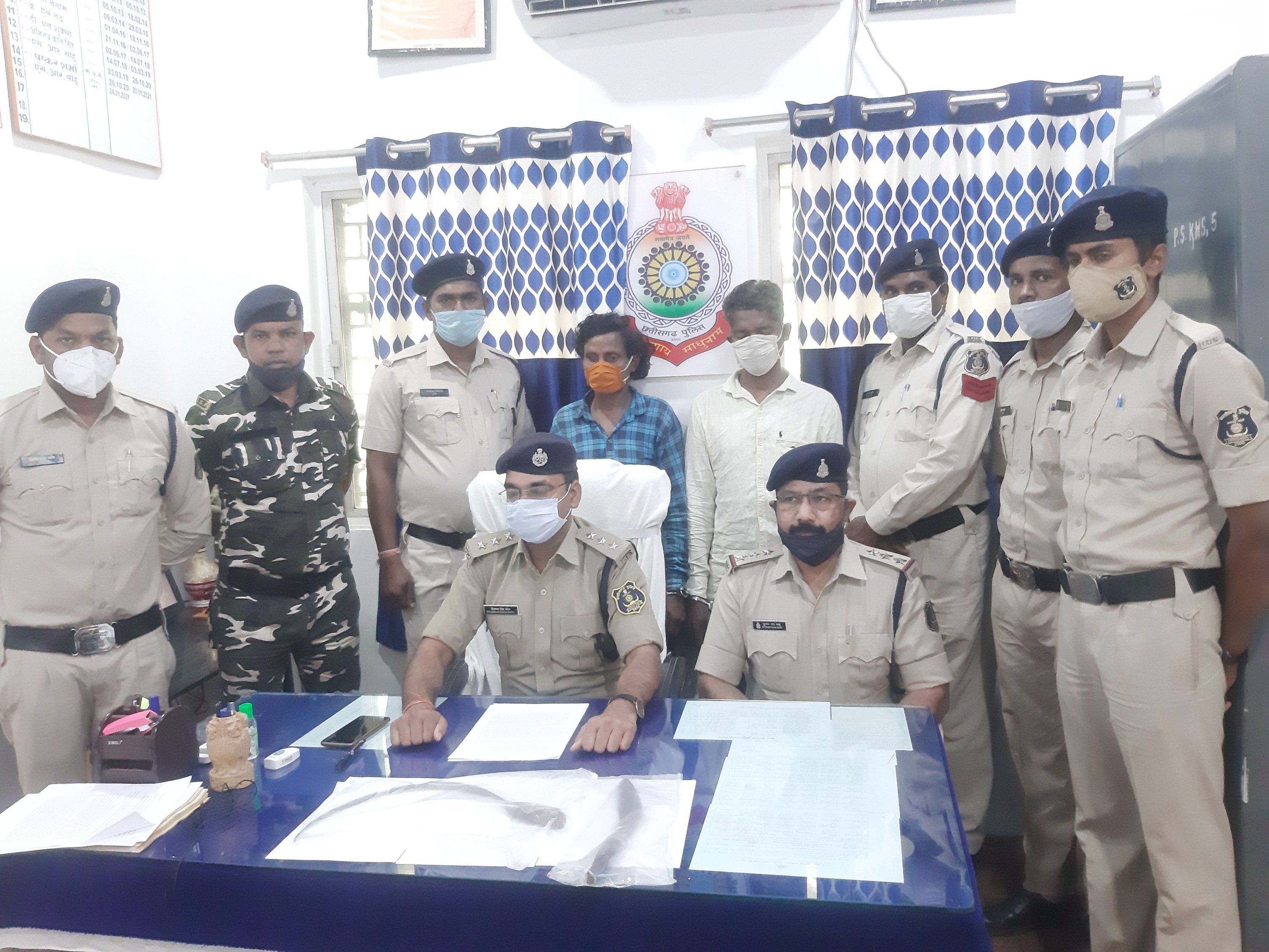 1-शंकर लाल राठिया पिता गोवर्धन राठिया 42 वर्ष ग्राम कुनकुनी2- पूरन लाल राठिया पिता करम साय राठिया 28 वर्ष ग्राम कुनकुनी थाना खरसियाको हत्या के अपराध में गिरफ्तार कर रिमांड पर भेजा जा रहा है ।मामले के पटाक्षेप 24 घण्टे में पुलिस अनुविभागीय अधिकारी खरसिया पिताम्बर सिंह पटेल के सुपरविजन में थाना प्रभारी खरसिया सुम्मत राम साहू के साथ एफएसएल टीम डाॅ राजकुमार पैकरा ,स्निफर डॉग ‘रूबी’,हैंडलर कांस्टेबल वीरेंद्र आनंद,खरसिया पुलिस प्र आर. लक्ष्मीनारायण राठौर , आरक्षक प्रदीप तिवारी , बिशोप सिंग, किशोर राठौर , राजेश राठौर , शिव वर्मा , मुकेश यादव, अशोक कंवर, योगेश साहू, योगेंद्र सिदार,की अहम भूमिका रही है ।