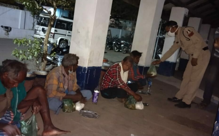 रायगढ़। जिला कलेक्टर भीम सिंह द्वारा रायगढ़ जिले को कंटेनमेंट जोन घोषित किए जाने के बाद पुलिस की दोहरी जिम्मेदार देखने को मिल रही है। एक ओर जहां जिले की पुलिस विभिन्न जगहों बनाए गए चेकप्वाइंट पर चौबीसों घंटे कड़कड़ाती धूप व उमस के बीच मुस्तैद है। जहां लापरवाही पूर्वक घूमने वालों पर कार्यवाही की जा रही है तो वही शासन प्रशासन के निर्देश को संतोष कुमार सिंह पुलिस अधीक्षक रायगढ़ के थाना प्रभारी सड़कों पर गरीब बेसहारा व मजदूर तबके के लोगों को खाना, ड्राई फूड व अन्य आवश्यक सामग्री देकर सहायता भी की जा रही है।