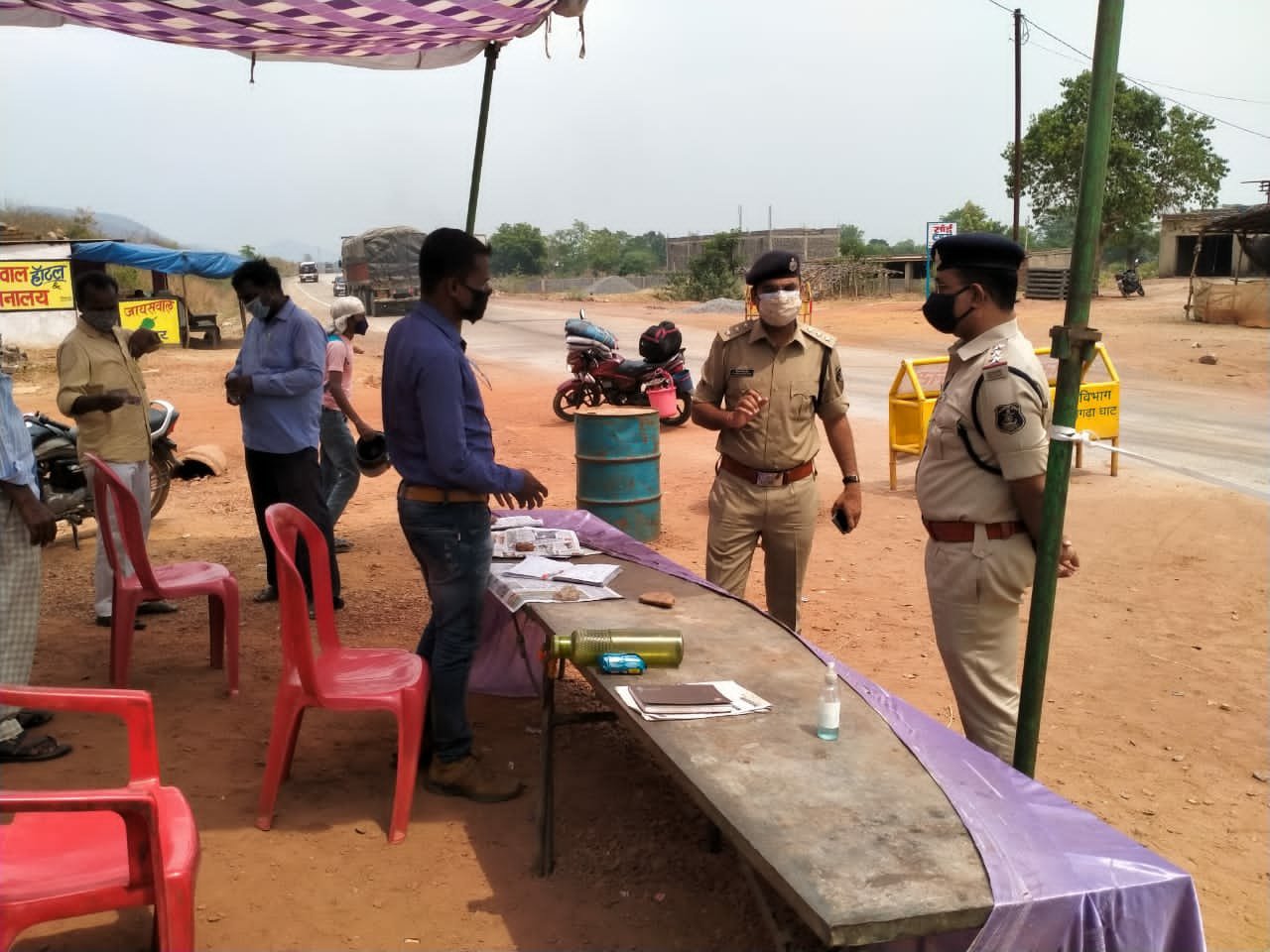 जिले के राजपत्रित अधिकारियों एवं थाना, चौकी प्रभारीगण द्वारा अपने-अपने क्षेत्र में पड़ने वाले इंटर स्टेट बेरियर/चेक पोस्ट – महापल्ली, एकताल, रेंगालपाली, हमीरपुर, जमुना, तोलमा, नवापारा, कंचनपुर, बिरनीपाली, झाल तथा इंटर डिस्ट्रिक बार्डर पर ग्राम पलगड़ा, अडभार, जोबी, चन्द्रपुर, कोड़ातराई, हाटी, शाहपुर, रैरूमा, बहमा, बगुडेगा, जगदीशपुर, परसदा के चेक पोस्ट में तैनात अधिकारी, कर्मचारियों को राज्य शासन द्वारा जारी दिशा निर्देशों के संबंध में आवश्यक जानकारी दिया गया । अधिकारियों द्वारा ड्यूटी पर तैनात कर्मचारियों को ई-पास के साथ दिगर राज्यों से आ रहे व्यक्यिों के पास RTPCR जांच की नेगेटिव रिपोर्ट देखने के बाद ही जिले में प्रवेश की अनुमति प्रदान करने को कहा गया, साथ ही कर्मचारियों को संक्रमण से सुरक्षित रहने हेतु मास्क, सेनेटाइजर एवं फिजिकल डिस्टेंसिंग का पालन करने की हिदायत दी गई है ।
