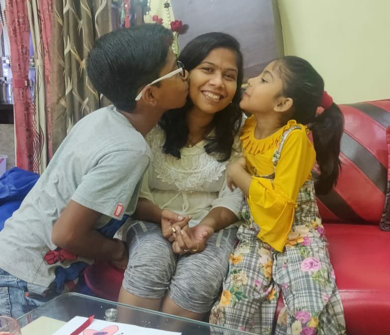 अपने बच्चों के साथ श्रीमती तिवारी