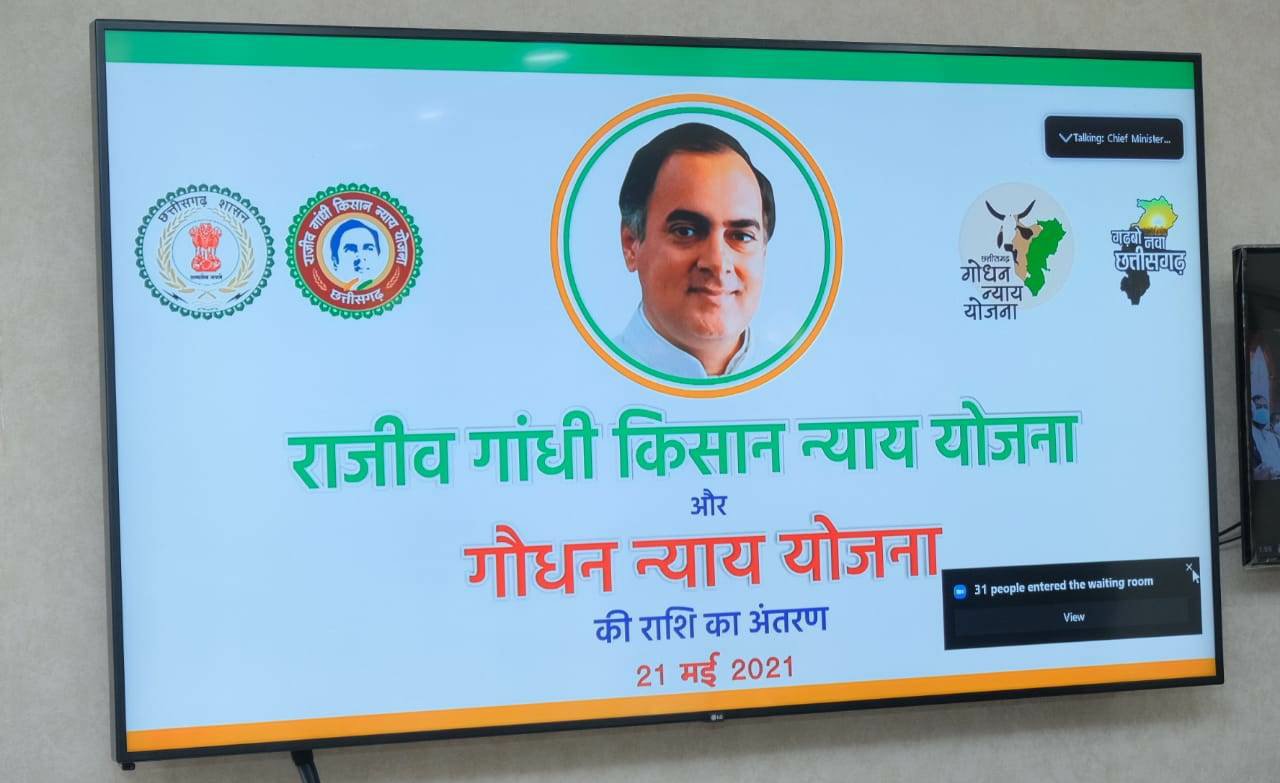 राजनांदगांव -मुख्यमंत्री भूपेश बघेल ने आज पूर्व प्रधानमंत्री भारत रत्न राजीव गांधी की पुण्यतिथि के अवसर पर वीडियो कांफ्रेसिंग के जरिए राजीव गांधी किसान न्याय योजना के तहत किसानों के खाते में राशि अंतरित की। इस अवसर पर मुख्यमंत्री बघेल ने राजीव गांधी किसान न्याय योजना के तहत