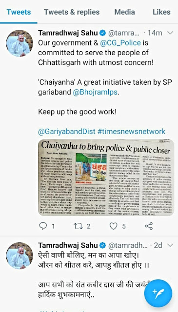 एसपी भोजराम पटेल की इस नई पहल की गृहमंत्री ताम्रध्वज साहु ने जमकर तारीफ की है। उन्होंने अपने ट्विटर पर बकायदा एक पोस्ट शेयर कर भोजराम के इस नेक पहल की सराहना की है। अंग्रेजी में किए अपने ट्वीट में गृहमंत्री ने एसपी भोजराम पटेल को ऐसे कार्य जारी रखने को कहा है।