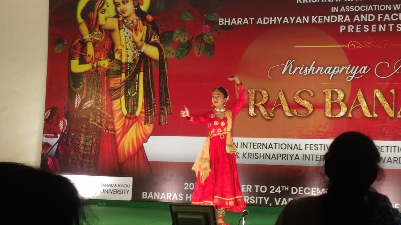 रायगढ़। काशी हिन्दू विश्वविद्यालय वाराणसी में आयोजित कृष्णप्रिया महोत्सव रस बनारस 2019 में अंतरराष्ट्रिय ख्याति प्राप्त संगीत संस्था श्री वैष्णव संगीत महाविद्यालय के बाल एवं युवा कथक नृत्यांगना भाव्यांशी व चित्रांशी को राष्ट्रीय कथक सम्मान से सम्मानित किया गया।
