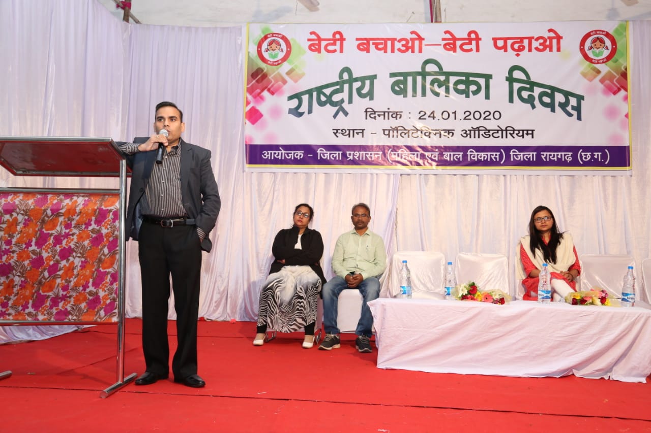 रायगढ़, 24 जनवरी 2020/ बेटियाँ समाज का अभिन्न हिस्सा है। समाज में उनके प्रति लिंग आधारित किसी भी भेदभाव को बर्दाश्त नहीं किया जाएगा। शासन-प्रशासन आपके साथ है, कानून आपकी रक्षा के लिए है और आपको पर्याप्त संरक्षण दिया जाएगा। बेटियाँ शेरनी की तरह निडर होकर रहें और बेखौफ होकर अपने सपनों को पूरा करें। जहां लैगिंक भेदभाव एवं अन्याय हो तो वहां जरूर आवाज उठायें। जहां जरूरत होगी वहां कानून का उल्लंघन करने वाले लोगों के खिलाफ एफआईआर दर्ज की जाएगी। उक्त बाते कलेक्टर श्री यशवंत कुमार ने आज राष्ट्रीय बालिका दिवस के अवसर पर बेटी बचाओ-बेटी पढ़ाओ अभियान के तहत पालीटेक्निक ऑडिटोरियम में आयोजित रायगढ़ गौरव सम्मान समारोह में कही।