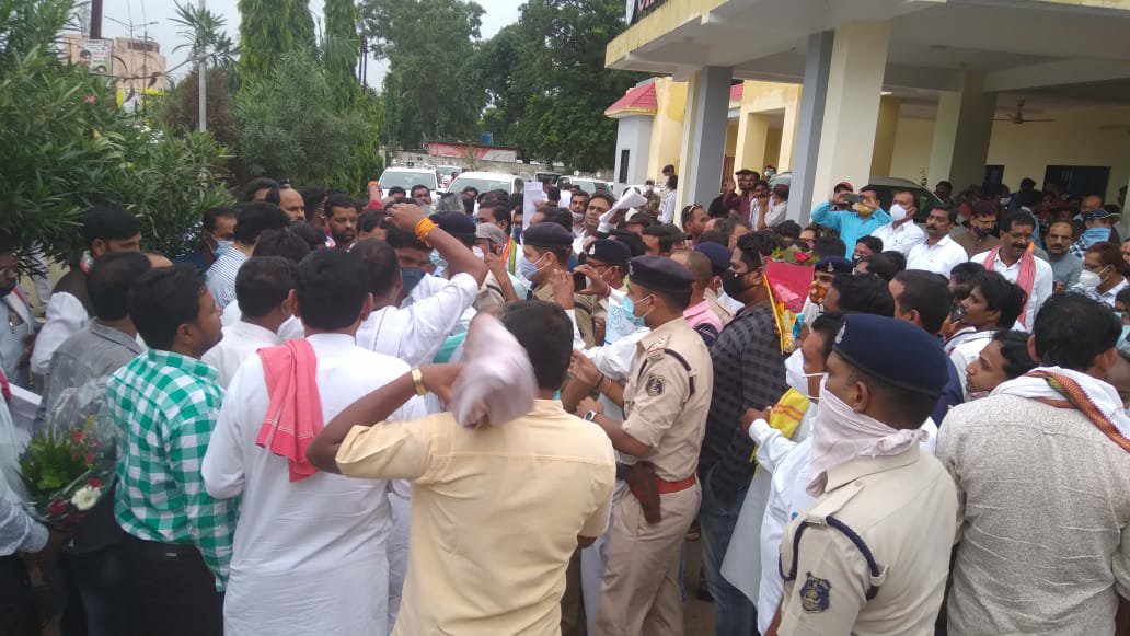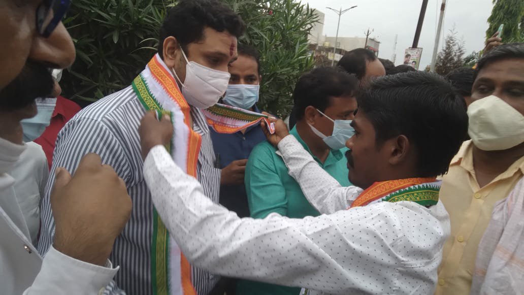 प्रभारी मंत्री उमेश पटेल का कांग्रेसियों ने किया जोरदार स्वागत