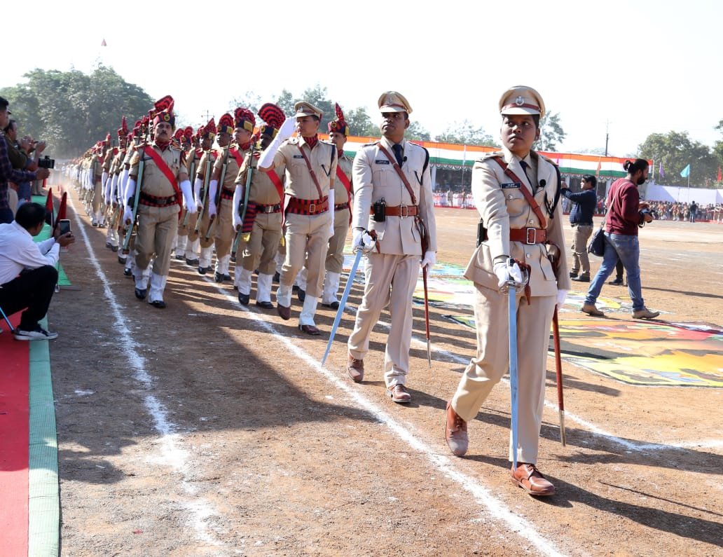 परेड में 16 प्लाटूनों द्वारा मार्च पास्ट किया गया, जिसमें छत्तीसगढ़ सशस्त्र पुलिस बल छठवीं वाहिनी, जिला पुलिस बल रायगढ़, होमगार्ड, जिला महिला पुलिस बल, वनरक्षक, एनसीसी सीनियर डिवीजन केजी कालेज, एनसीसी सीनियर विंग केजी कालेज, एनसीसी सीनियर डिवीजन तथा सीनियर विंग आईटीआई रायगढ़, एनसीसी जूनियर डिवीजन ब्वायज नटवर स्कूल, एनसीसी जूनियर डिवीजन म्यूनिस्पल स्कूल, स्टूडेन्ट पुलिस कैडेट्स, गाईड गल्र्स नटवर स्कूल, गाईड गल्र्स कार्मेल स्कूल, स्काउट ब्वायज संत माईकल, स्काउट ब्वायज शा.उ.मा.वि.जूटमिल स्कूल एवं कोटवार दल शामिल हुए।