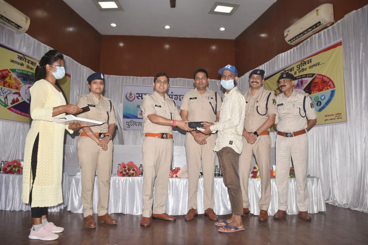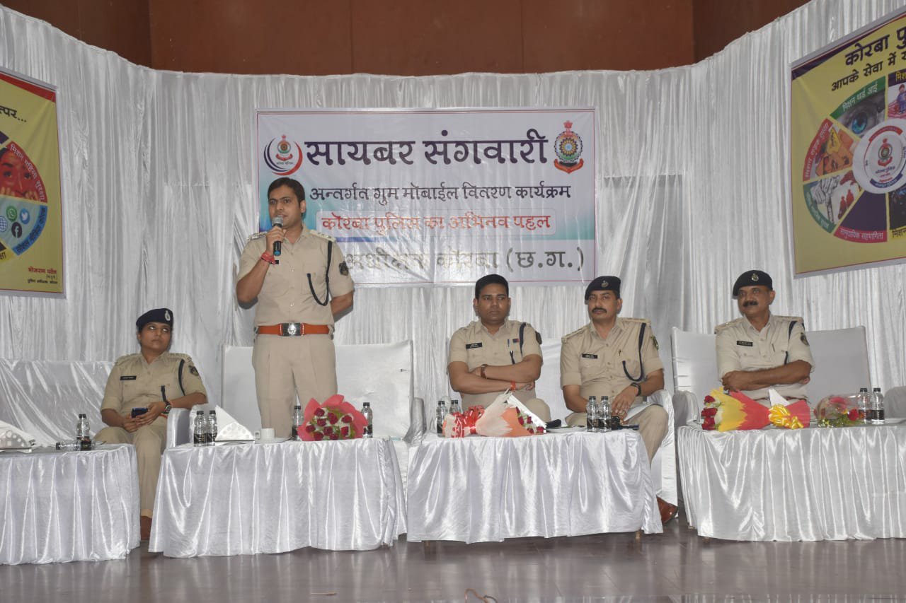 गीतांजली भवन कोरबा में आयोजित कार्यक्रम में पुलिस अधीक्षक, भोजराम पटेल के द्वारा सभी मोबाईल मालिको को बुलाकर उन्हें अपने हाथों से मोबाइल सौपा गया। साथ ही सायबर क्राईम/बैक फ्रॉड/सोशल मीडिया के माध्यम से होने वाले ठगी के संबंध में अवगत कराकर जागरूक रहने की सलाह दी गई। इस अवसर पर सायबर सेल के नोडल अधिकारी अतिरिक्त, पुलिस अधीक्षक श्री कीर्तन राठौर के द्वारा वर्ष 2021 में सायबर सेेल कोरबा द्वारा अपराध विवेचना में किए गए सहयोग एवं अन्य उपलब्धियों के बारे में रिपोर्ट कार्ड प्रस्तुत किया गया।