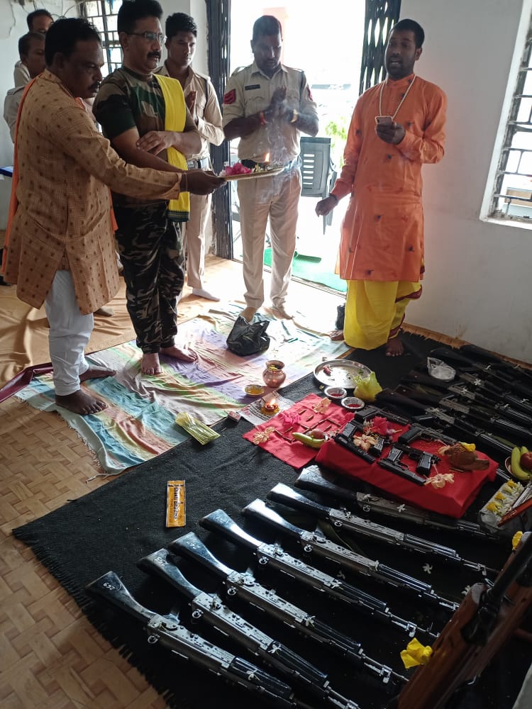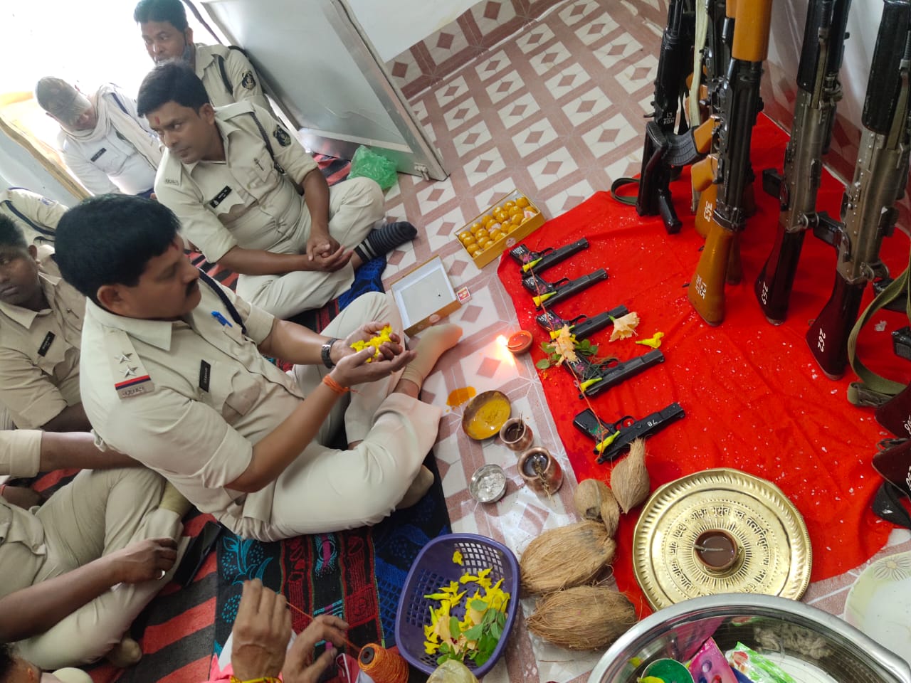 दशहरे पर शस्त्र पूजन करने का रिवाज काफी पुराना है ऐसे में हमेशा शस्त्रों के साथ रहने वाले पुलिस के जवान शस्त्र पूजन से कैसे पीछे रह सकते हैं । ऐसी मान्यता है कि इस दिन जो भी काम किया जाता हैं, उसमें विजय यानी सफलता मिलती है।वर्षों से चली आ रही इस परंपरा का निर्वहन करते हुए
