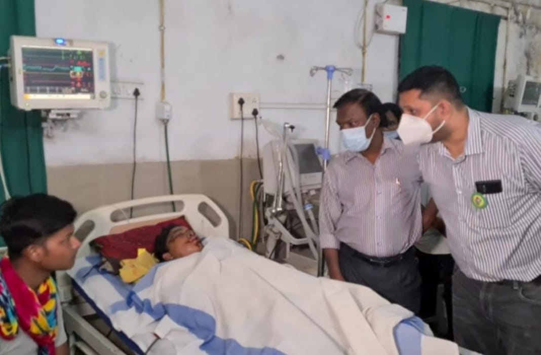 पत्थलगांव हादसे मे हुए घायलों से हास्पिटल मिलें उच्च शिक्षा मंत्री उमेश पटेल
