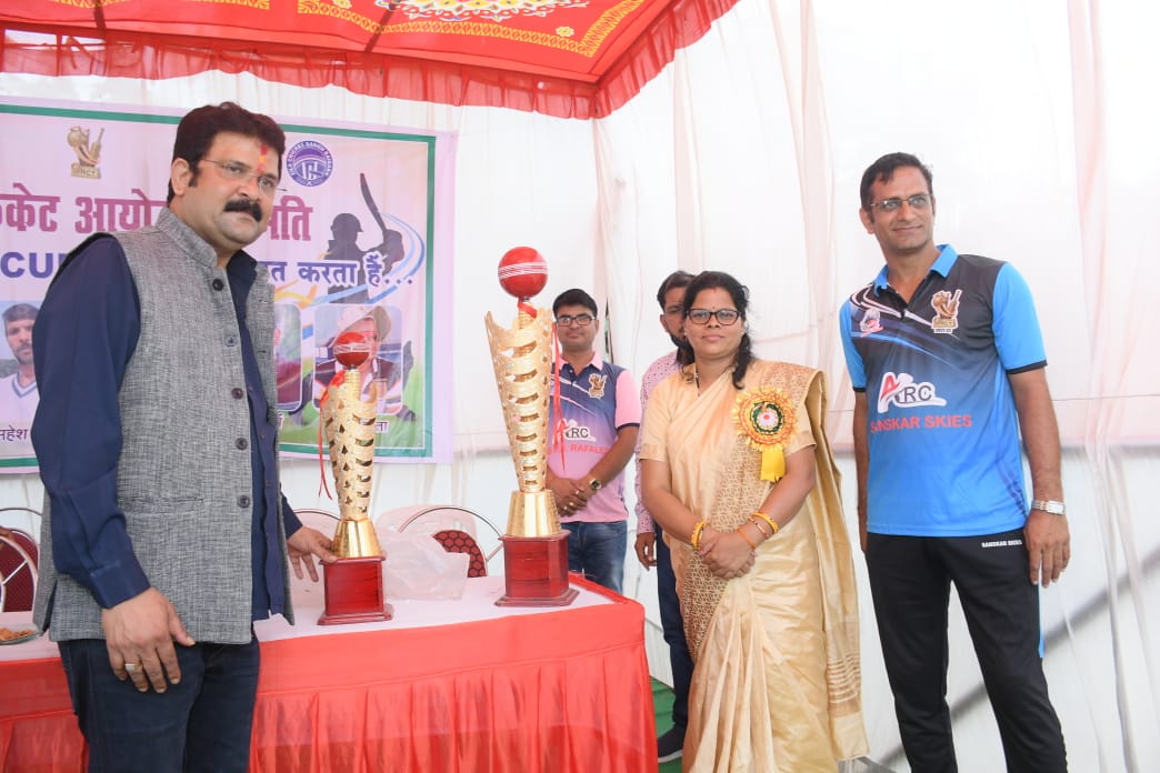 रायगढ़- जिले मे टी-20 आरसीटी कप का उद्घाटन समारोह डिग्री कॉलेज लाल मैदान में शहर विधायक प्रकाश नायक, महापौर जानकी काटजू, जिला किक्रेट संघ सचिव रामचन्द्र शर्मा, समाज सेवी अमृत काटजू, शरणदीप सिंह, महावीर अग्रवाल, संजय सिंह आदि अतिथिगण की उपस्थिति में किया गया। आयोजन समिति के सदस्य विशाल सिंघानिया, महेश वर्मा, विनय साहू ने बताया कि कार्यक्रम के आरंभ में अतिथियों का स्वागत किया गया। तत्पश्चात विधायक एवं मुख्य अतिथि प्रकाश नायक व कार्यक्रम अध्यक्ष महापौर काटजू आदि के द्वारा विजेता एवं उपविजेता ट्रॉफी का अनावरण किया गया। अपने उद्बोधन में विधायक प्रकाश नायक ने ऐसे आयोजन को खेल को बढ़ावा देने वाला बताते हुए आयोजन समिति की तारीफ की। जबकि कार्यक्रम अध्यक्ष जानकी काटजू ने सभी उम्र के खिलाडिय़ों को एक साथ खेलने का मौका देने पर प्रतियोगिता की प्रशंसा की। सचिव रामचन्द्र शर्मा ने प्रतियोगिता का उद्देश्य जिले में खेल को बढ़ावा देना है कहते हुए जिला क्रिकेट संघ सदा ही सहयोग के लिए तैयार है बताया। अतिथि शरणदीप सिंह ने आयोजन समिति का हिस्सा होने पर खुशी जताई, समाज सेवी महावीर अग्रवाल ने ऐसे आयोजन करवाते रहने की जरूरत पर जोर दिया। उद्घाटन के पश्चात विधायक प्रकाश नायक ने बल्लेबाजी करते हुए प्रतियोगिता का शुभारंभ किया। इस दौरान उपस्थित गणमान्य में सभी आठ टीमों के मेंटर व कप्तान सहित सभी खिलाड़ी मौजूद रहे। आयोजन समिति के विशाल सिंघानिया, महेश वर्मा, विनय साहू, प्रशांत शर्मा, अक्षय गुप्ता, प्रवीण शराफ, अमित कुंवर, रवि सिंह, सचिन चौहान, सूरज आचार्या, स्वराज शर्मा आदि मौजूद रहे। कार्यक्रम का संचालन वरिष्ठ खिलाड़ी संतोष गुप्ता ने किया। कल का प्रथम मैच प्रात: 9 बजे से ट्रीनीटी स्टार एवं पाली फाईटर्स के बीच एवं दूसरा मैच दोपहर 1:30 बजे से काइजर रॉयल्स एवं एबीपीएस राफेल के बीच खेला जाएगा।