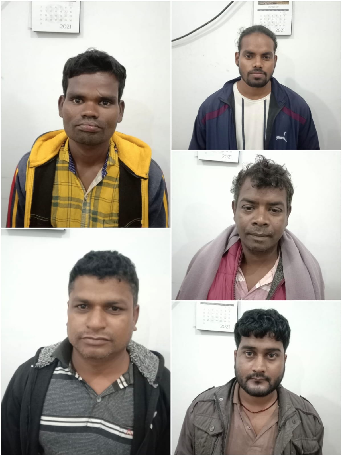 5 डालेश्वर साहू पिता छोटूलाल उम्र 36 वर्ष सभी ग्राम लोढाझर थाना भूपदेवपुर मोमबत्ती की रोशनी में 52 पत्ते तास से जुआ खेलते पकड़े गये, जिनके फड एवं पास से नगदी रकम 21,500/- रूपये व जुआ सामग्री जप्त किया गया है । आरोपियों पर थाना भूपदेवपुर में 13 जुआ एक्ट के तहत कार्यवाही कर रिमांड पर भेजा गया है । कार्यवाही में थाना प्रभारी निरीक्षक उत्तम साहू के साथ सहायक उप निरीक्षक देव प्रसाद चौहान, प्रधान आरक्षक जगदीश नायक, आरक्षक मुरली मनोहर पटेल, त्रिभुवन सिदार की सक्रिय भूमिका रही है ।