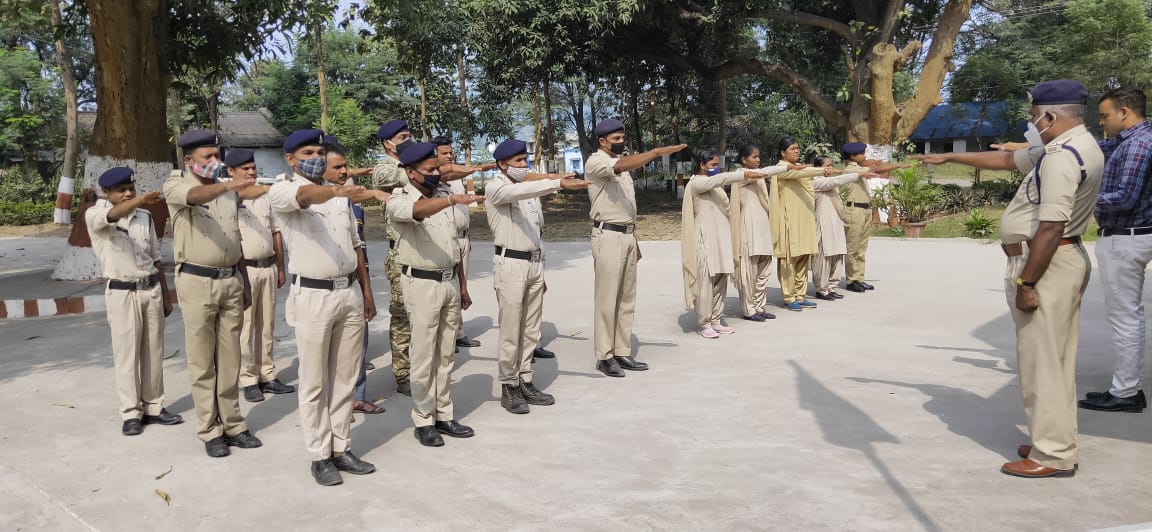 दिनांक 31/10/2021 के सुबह “राष्ट्रीय एकता दिवस” के अवसर पर पुलिसकर्मियों द्वारा एकता एवं अखंडता की शपथ ली गई, साथ ही इस दिन “पुलिस झंडा दिवस” का समापन कार्यक्रम पुलिस सामुदायिक भवन में आयोजित किया गया था । समापन कार्यक्रम में बच्चों के लिये पेटिंग, रंगोली, निबंध एवं वाद-विवाद प्रतियोगिता का आयोजन किया गया था, जिसमें शहर के प्रतिभावान बच्चों ने हिस्सा लिया । डीएसपी बोनीफास एक्का, आरआई अमरजीत खुंटे एवं सहायक उप निरीक्षक रेशमलाल साहू द्वारा प्रतियोगिता में प्रथम, द्वितीय एवं तृतीय स्थान हासिल किए बच्चों को पुरस्कार दिया गया साथ ही प्रतियोगिता में शामिल होने वाले अन्य सभी बच्चों को सात्वना पुरस्कार भेंट किया गया । कार्यक्रम में सभी बच्चों के लिए स्वलपाहार की व्यवस्था की गई थी ।