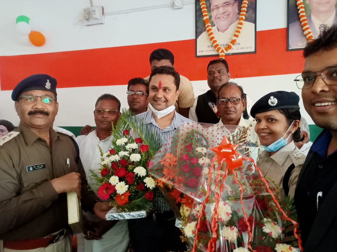 खरसिया के मदनपुर कांग्रेस कार्यालय में आगमन हुआ वहाँ उनके चाहने वालो ने उनके स्वागत में