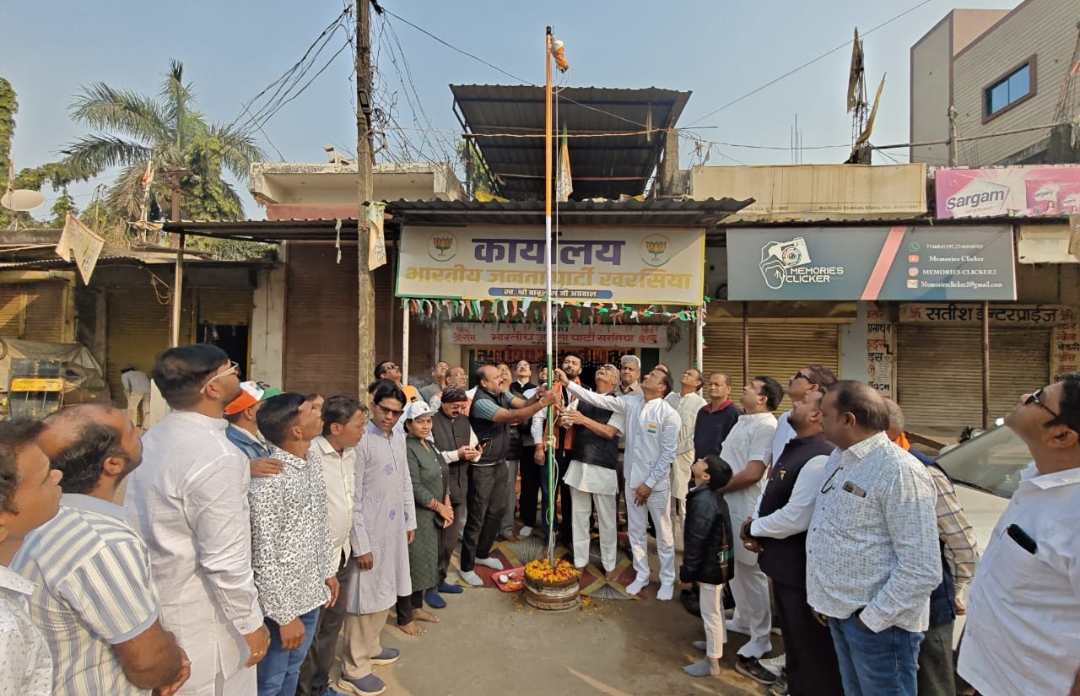 ✍️संतोष यादव @खरसिया।भारतीय जनता पार्टी नगर मंडल खरसिया के कार्यालय में 77वें गणतंत्र दिवस के अवसर पर मंडल अध्यक्ष विजय शर्मा ने ध्वजारोहण किया। इस अवसर पर उन्होंने पार्टी कार्यकर्ताओं को गणतंत्र दिवस की शुभकामनाएं दीं और संविधान तथा लोकतांत्रिक मूल्यों के प्रति प्रतिबद्धता दोहराई।