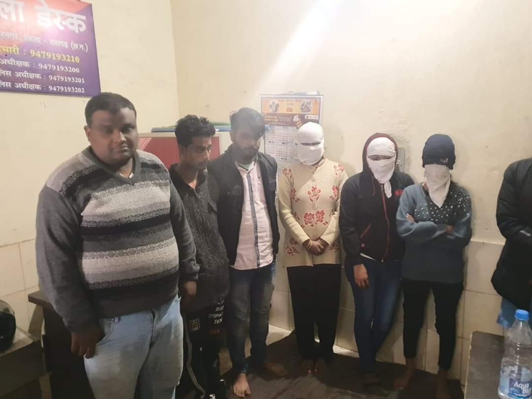 दलाल पति-पत्नी, होटल संचालक, दो युवती व ग्राहक युवक गिरफ्तार