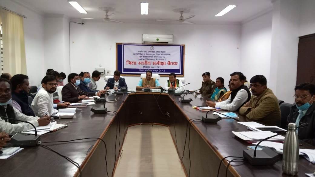 अधिकारियों की समीक्षा बैठक लेकर धान-खरीदी की तैयारी, कोविड-19 टीकाकरण, कोरोना टेस्ट, जिले में बारदाने की उपलब्धता, मनरेगा के कार्य, लोक सेवा गांरटी अधिनियम, जल जीवन मिशन की प्रगति के कार्य, छत्तीसगढ़ शासन की महत्वकांक्षी योजना नरवा, गरूवा, घुरवा, बाड़ी, जिले में विद्युत व्यवस्था की स्थिति आदि की गहन समीक्षा की। इस अवसर पर जशपुर विधायक विनय भगत, कलेक्टर रितेश कुमार अग्रवाल, पुलिस अधीक्षक विजय अग्रवाल, वनमण्डलाधिकारी कृष्णा जाधव, अपर कलेक्टर आई.एल.ठाकुर एवं जिला स्तरीय अधिकारी उपस्थित थे। उन्होंने कहा कि जिले के सभी पंजीकृत किसानों से धान खरीदी केन्द्र के माध्यम से धान खरीदे। किसानों को धान बेचने के लिए किसी भी प्रकार की समस्या नहीं होनी चाहिए इसका विशेष ध्यान रखें। साथ ही बारदाने की उपलब्धता के बारे में भी जानकारी ली।