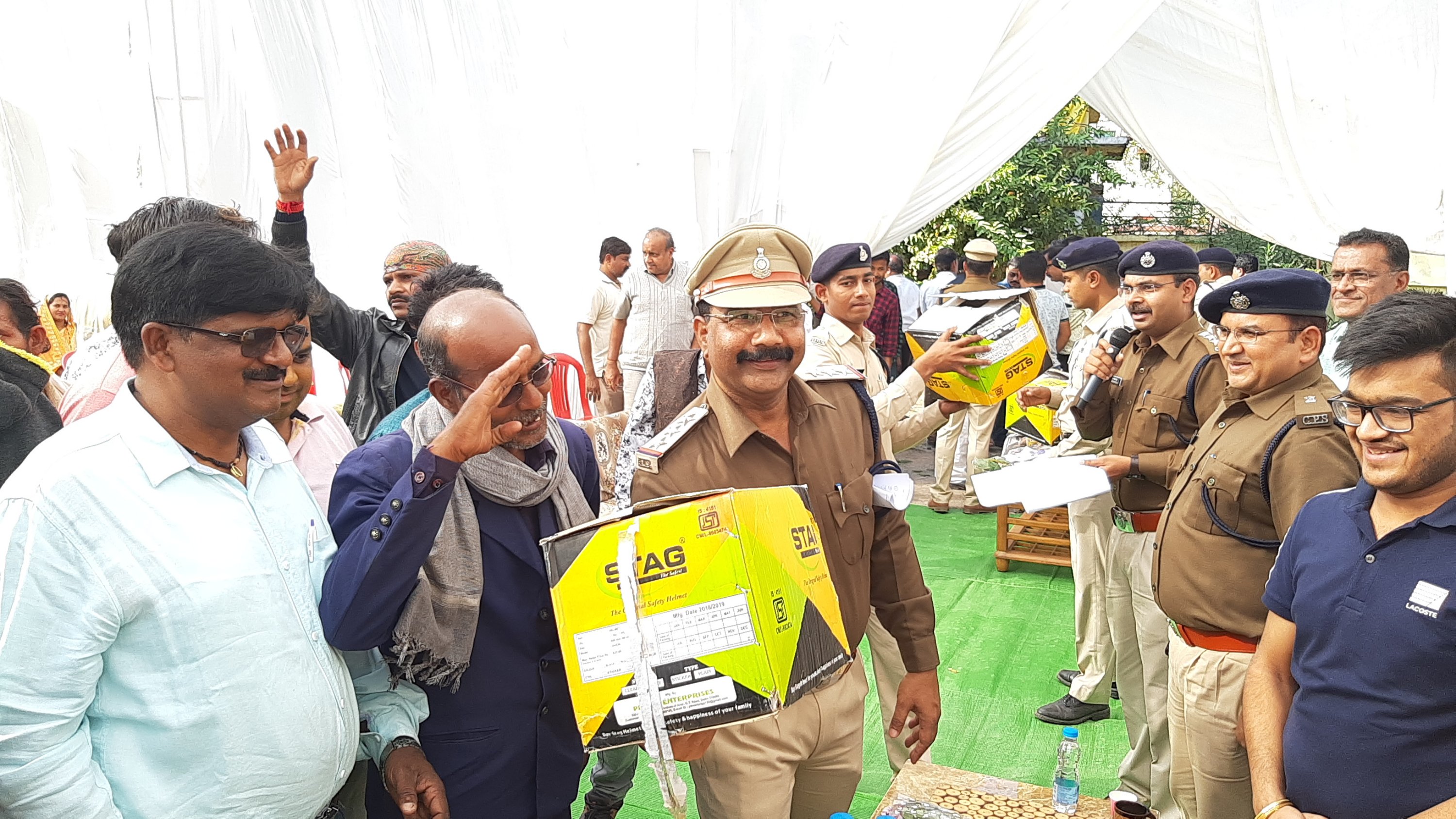 पुलिस अधीक्षक द्वारा शहर एवं देहात में कार्यरत 100 पुलिस मित्रों को हेलमेट वितरण किया गया है