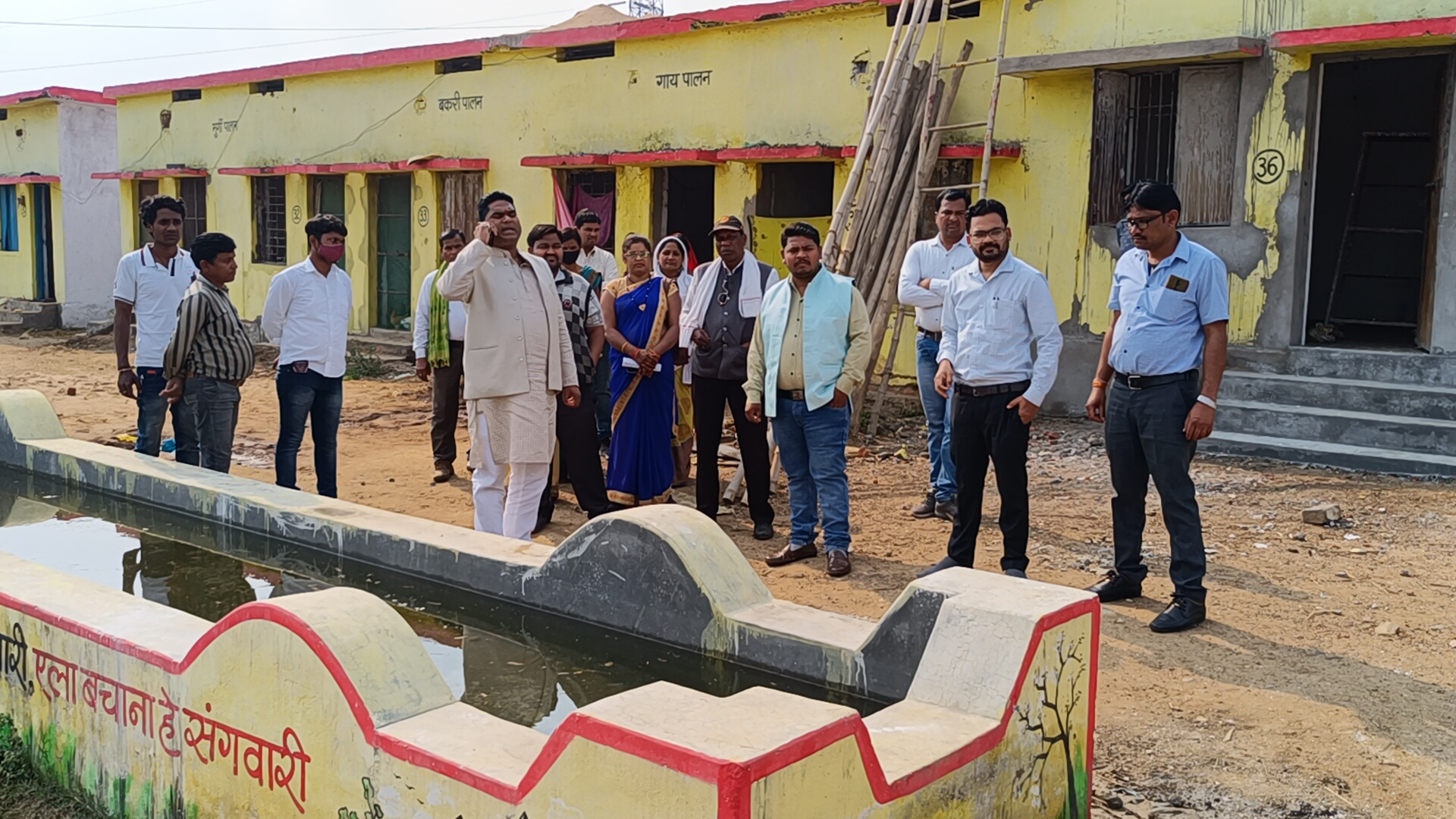 छत्तीसगढ़ शासन की नरवा घुरवा बाड़ी कार्यक्रम के तहत आदर्श ग्राम में किए गए कार्यों का निरीक्षण करते हुए