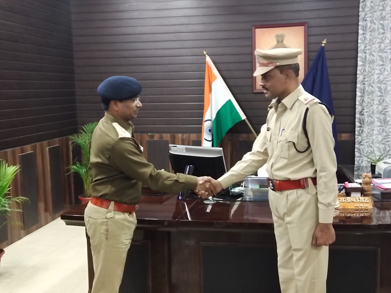 आज दिनांक 17.02.2020 को पुलिस अधीक्षक संतोष कुमार सिंह द्वारा अपने कक्ष में मनमोहन बैरागी के कंधों पर स्टार लगाकर उन्हें सहायक उपनिरीक्षक के पद पर पदोन्नत किए। इस दौरान एडिशनल एसपी अभिषेक वर्मा, रक्षित निरीक्षक अमरजीत खूंटे एवं कार्यालय स्टॉफ मौजूद थे ।
